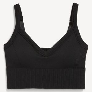 Light Support Fluid Seamless Longline Sports Bra: Featuring Fluid Seamless, for breathable, barely-there feels.plunging v-neck, wide adjustable straps, ribbed panels, bra pads, go-dry wicks moisture, #749261