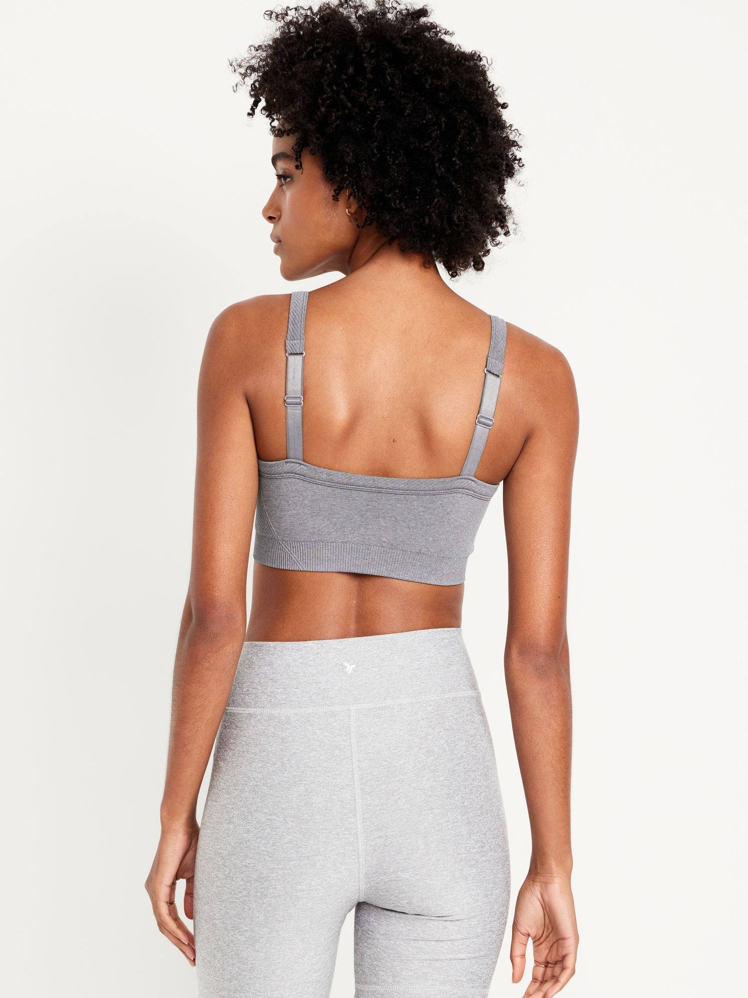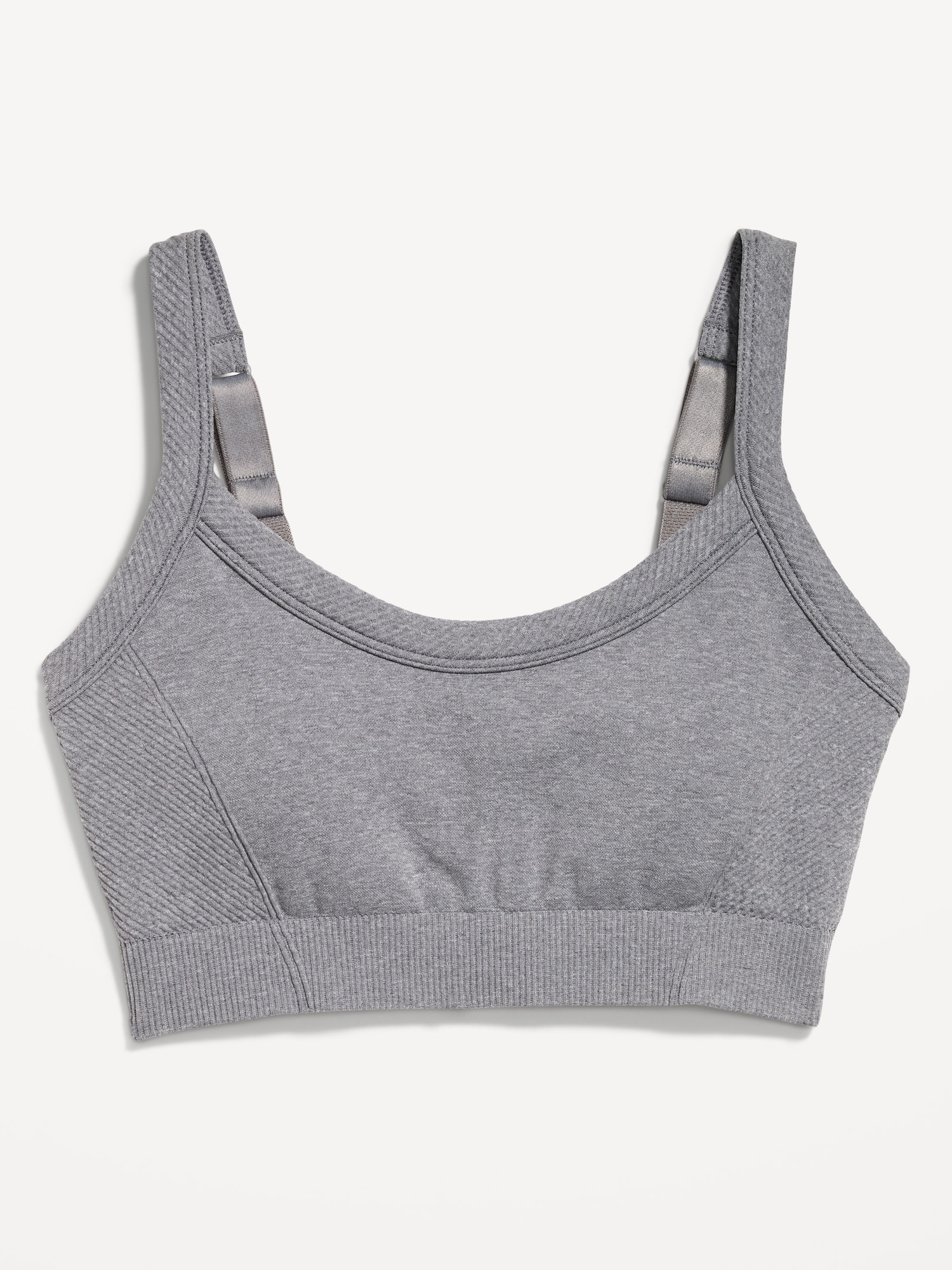 Light Support Fluid Seamless Ribbed Sports Bra: Featuring Fluid Seamless, for breathable, barely-there feels.scoop neck, adjustable straps, #845757