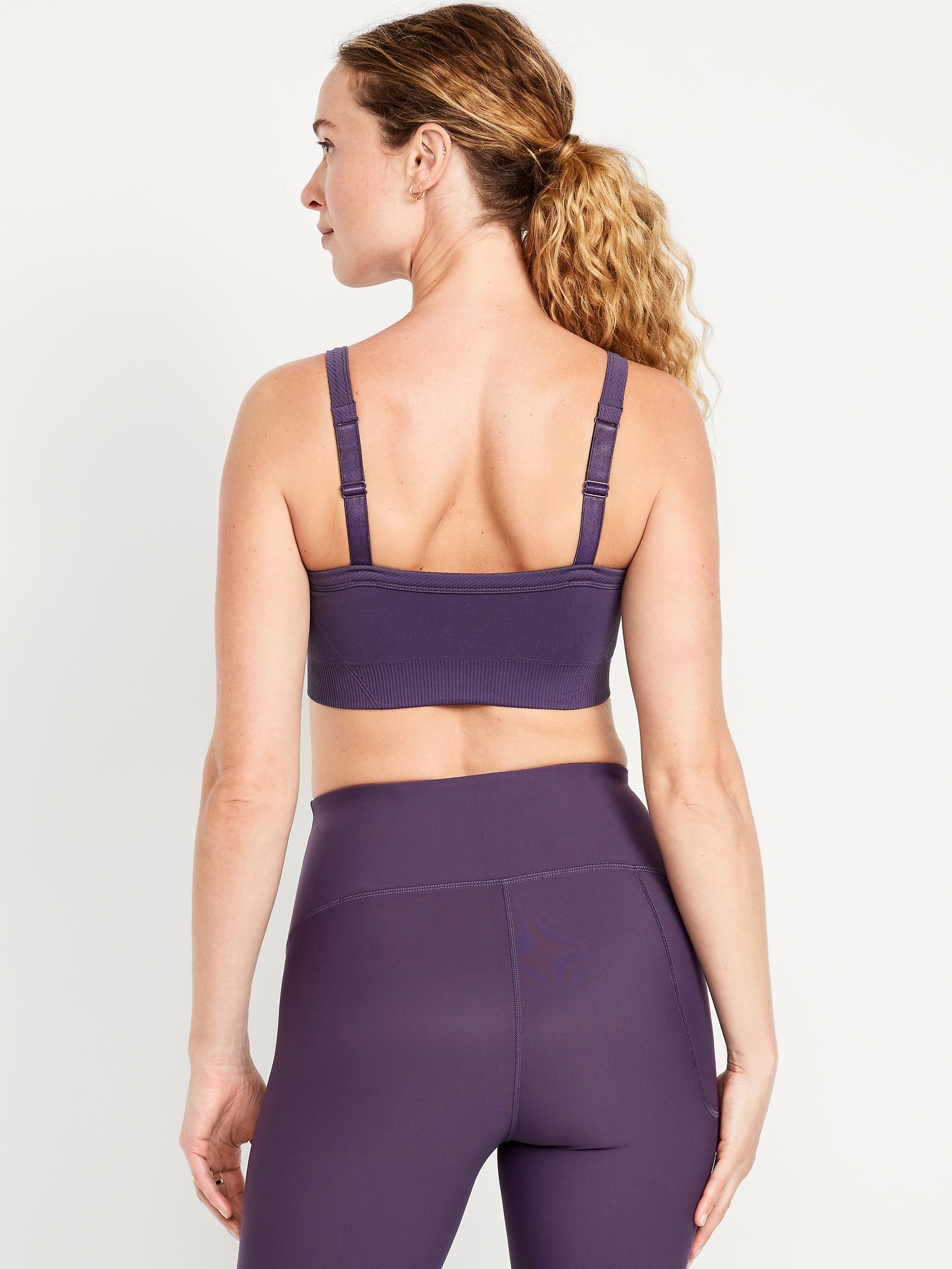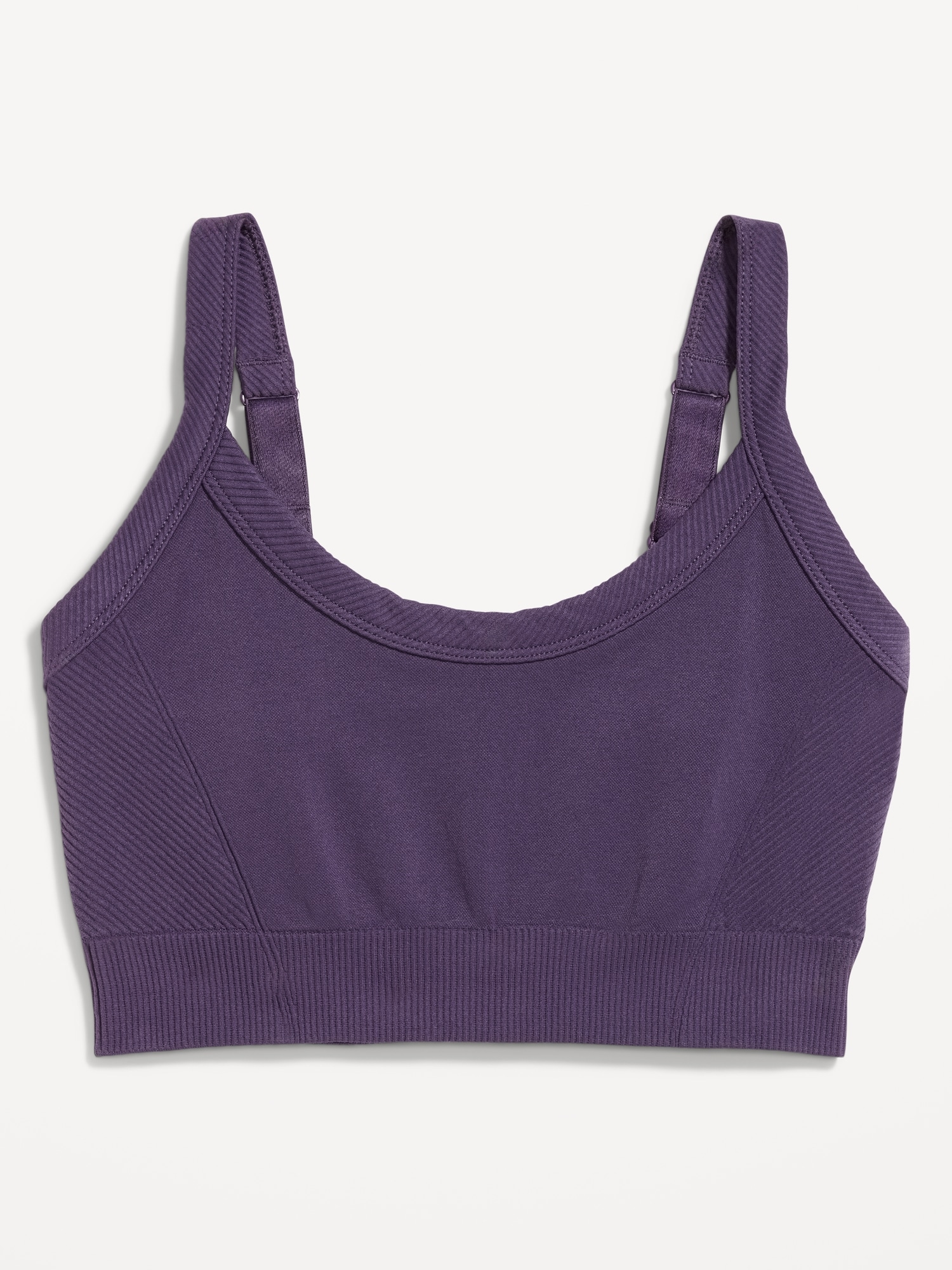 Light Support Fluid Seamless Ribbed Sports Bra: Featuring Fluid Seamless, for breathable, barely-there feels.scoop neck, adjustable straps, #845757