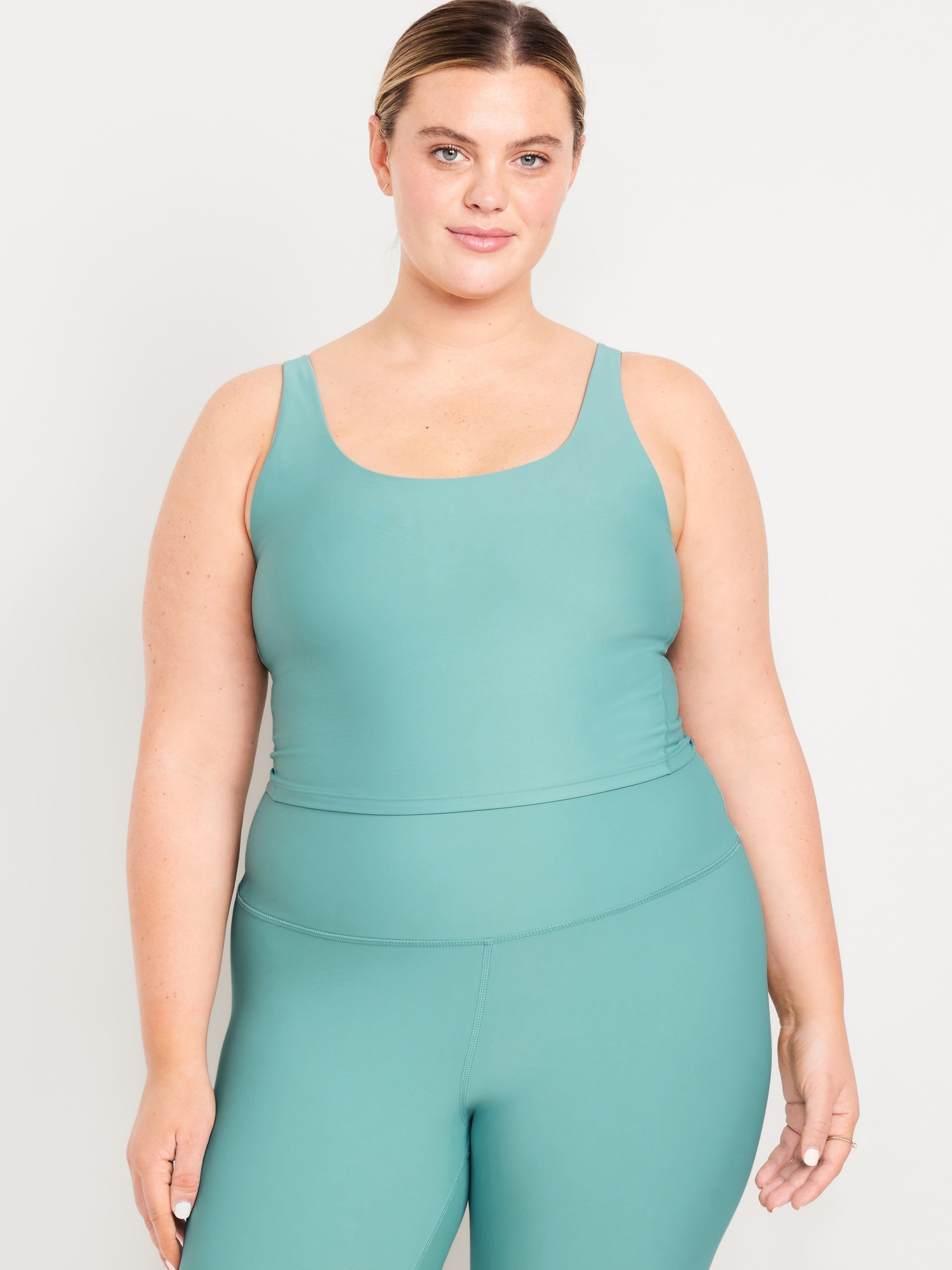 Light Support PowerSoft Longline Sports Bra: Featuring PowerSoft. Light compression meets a peachy-smooth, sweat-wicking fabric.scoop neck, ribbed side panels with piping, racerback, removable cups, shelf bra with brushed-elastic interior hem, go-dry wicks moisture, #749231