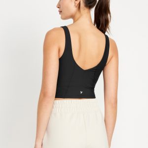 Light Support PowerSoft Longline Sports Bra: Featuring PowerSoft. Light compression meets a peachy-smooth, sweat-wicking fabric.deep v-neck, removable cups, brushed elastic hem, go-dry wicks moisture, #892232