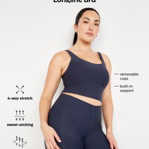 Light Support PowerSoft Longline Sports Bra: Featuring PowerSoft. Light compression meets a peachy-smooth, sweat-wicking fabric.scoop neck, ribbed side panels with piping, racerback, removable cups, shelf bra with brushed-elastic interior hem, go-dry wicks moisture, #749231