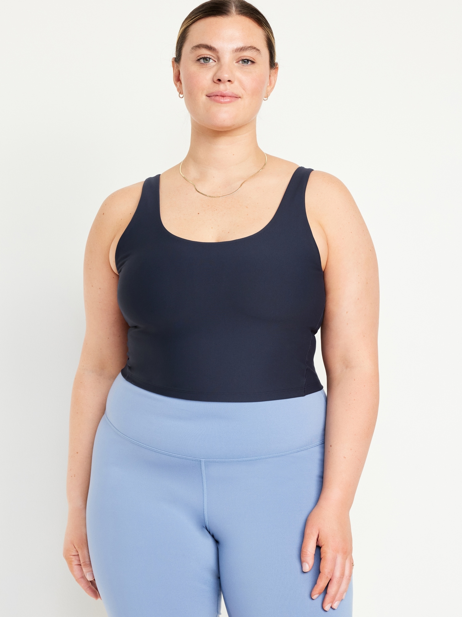Light Support PowerSoft Longline Sports Bra: Featuring PowerSoft. Light compression meets a peachy-smooth, sweat-wicking fabric.scoop neck, ribbed side panels with piping, racerback, removable cups, shelf bra with brushed-elastic interior hem, go-dry wicks moisture, #749231