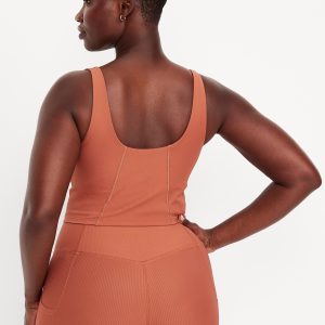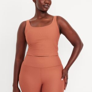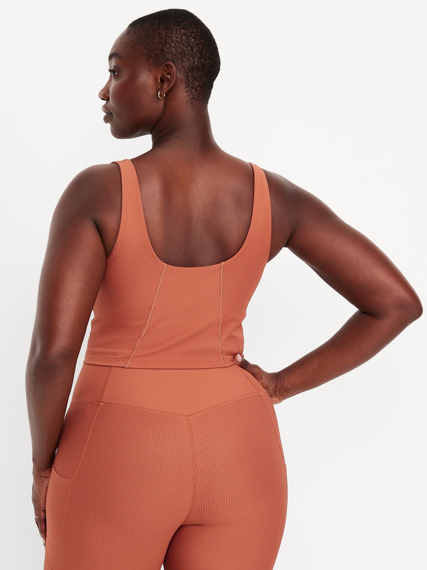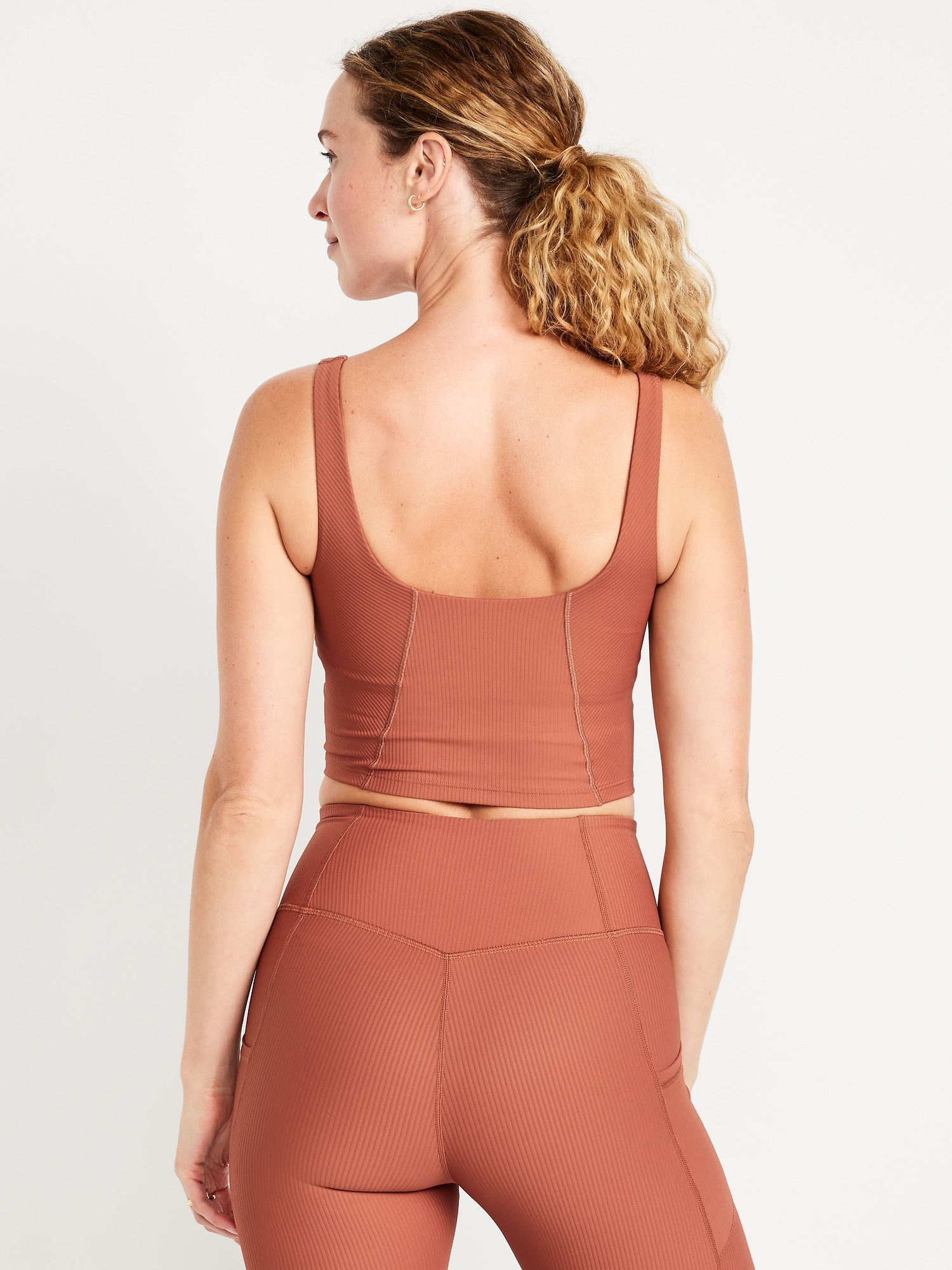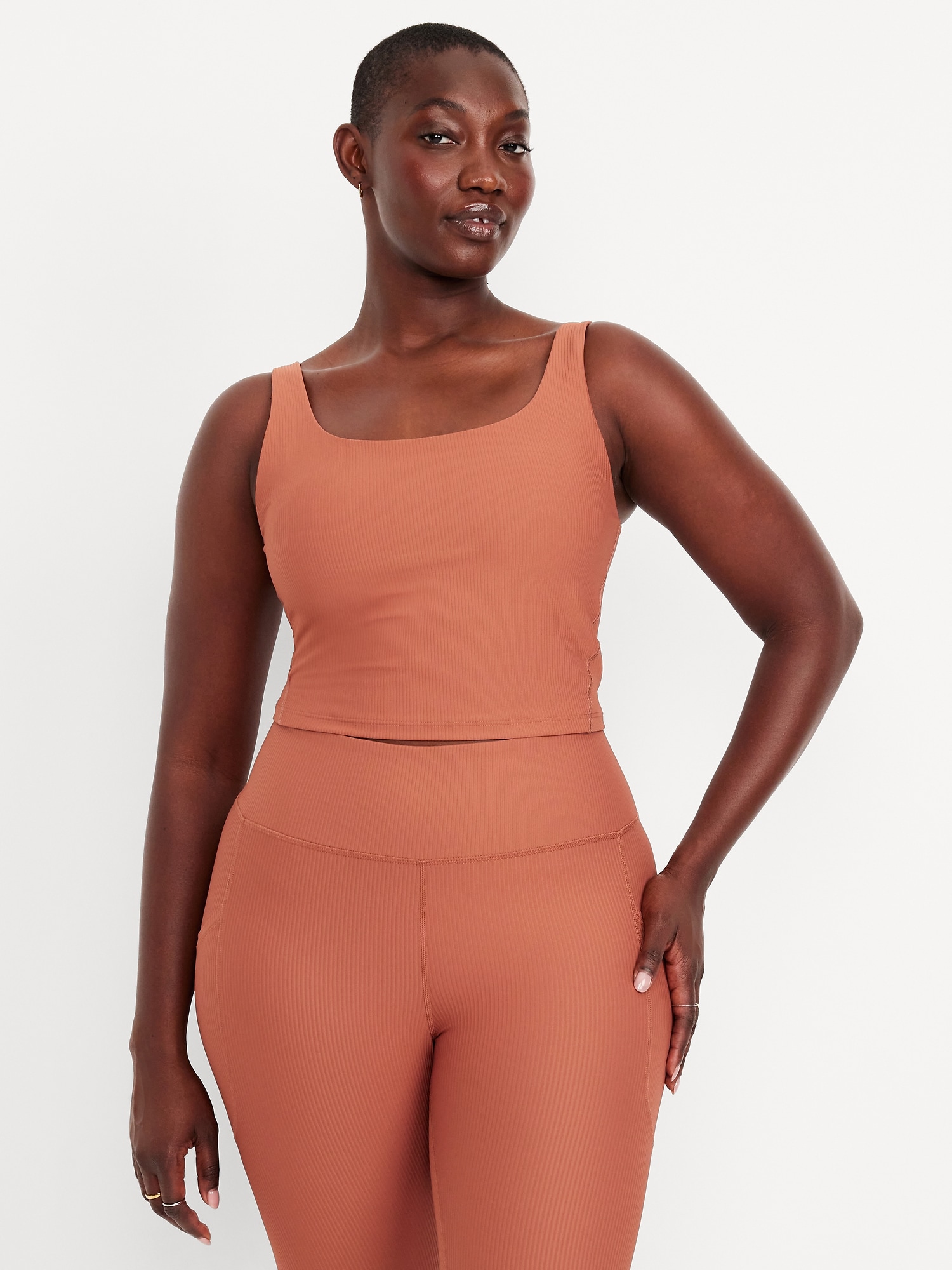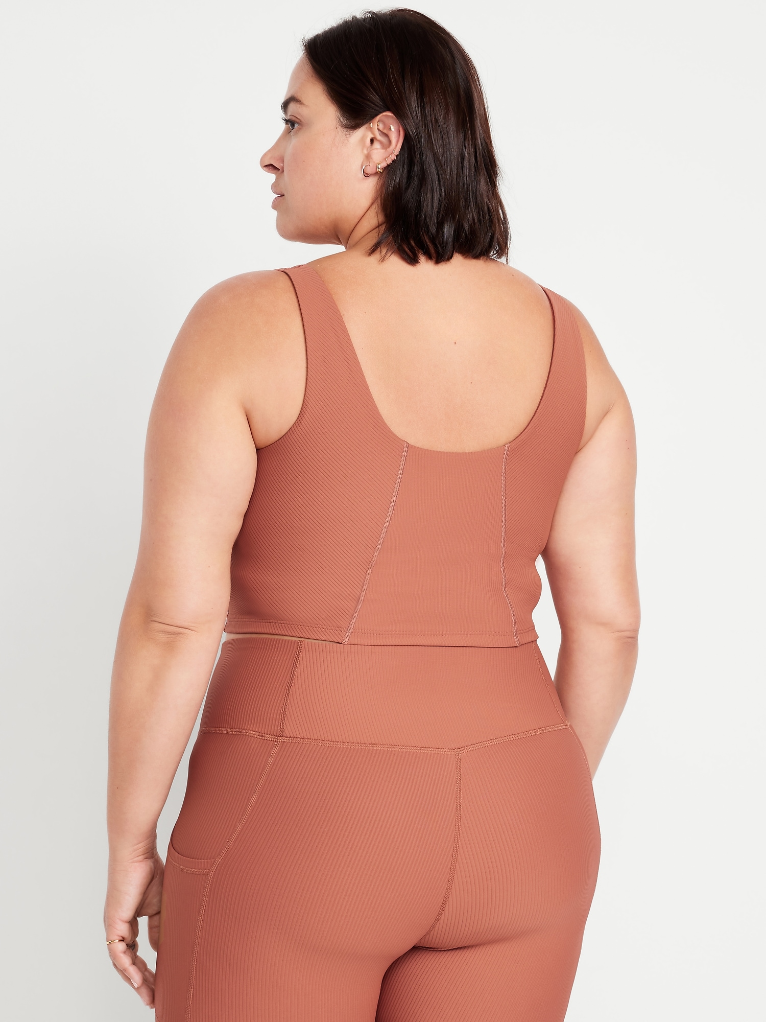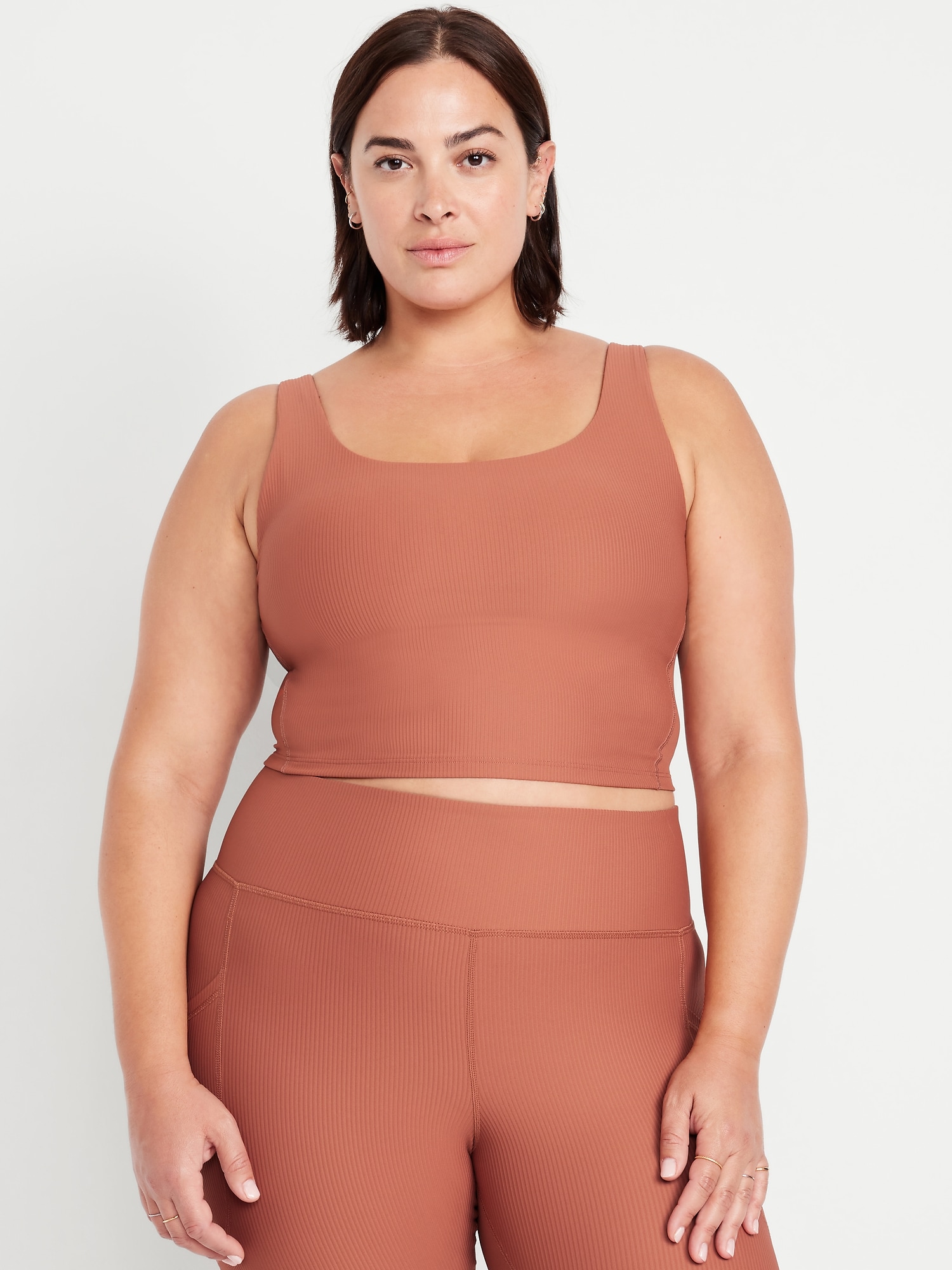 Light Support PowerSoft Rib Longline Sports Bra: Featuring PowerSoft. Light compression meets a peachy-smooth, sweat-wicking fabric.scoop neck, wide straps, removable pads, go-dry wicks moisture, #835594