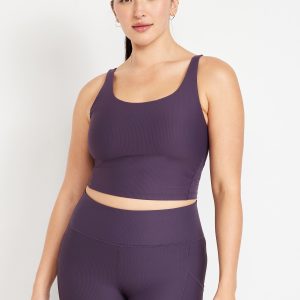 Light Support PowerSoft Rib Longline Sports Bra: Featuring PowerSoft. Light compression meets a peachy-smooth, sweat-wicking fabric.scoop neck, wide straps, removable pads, go-dry wicks moisture, #835594