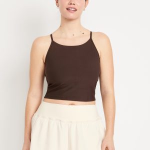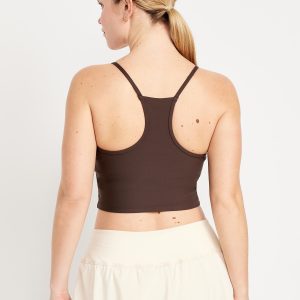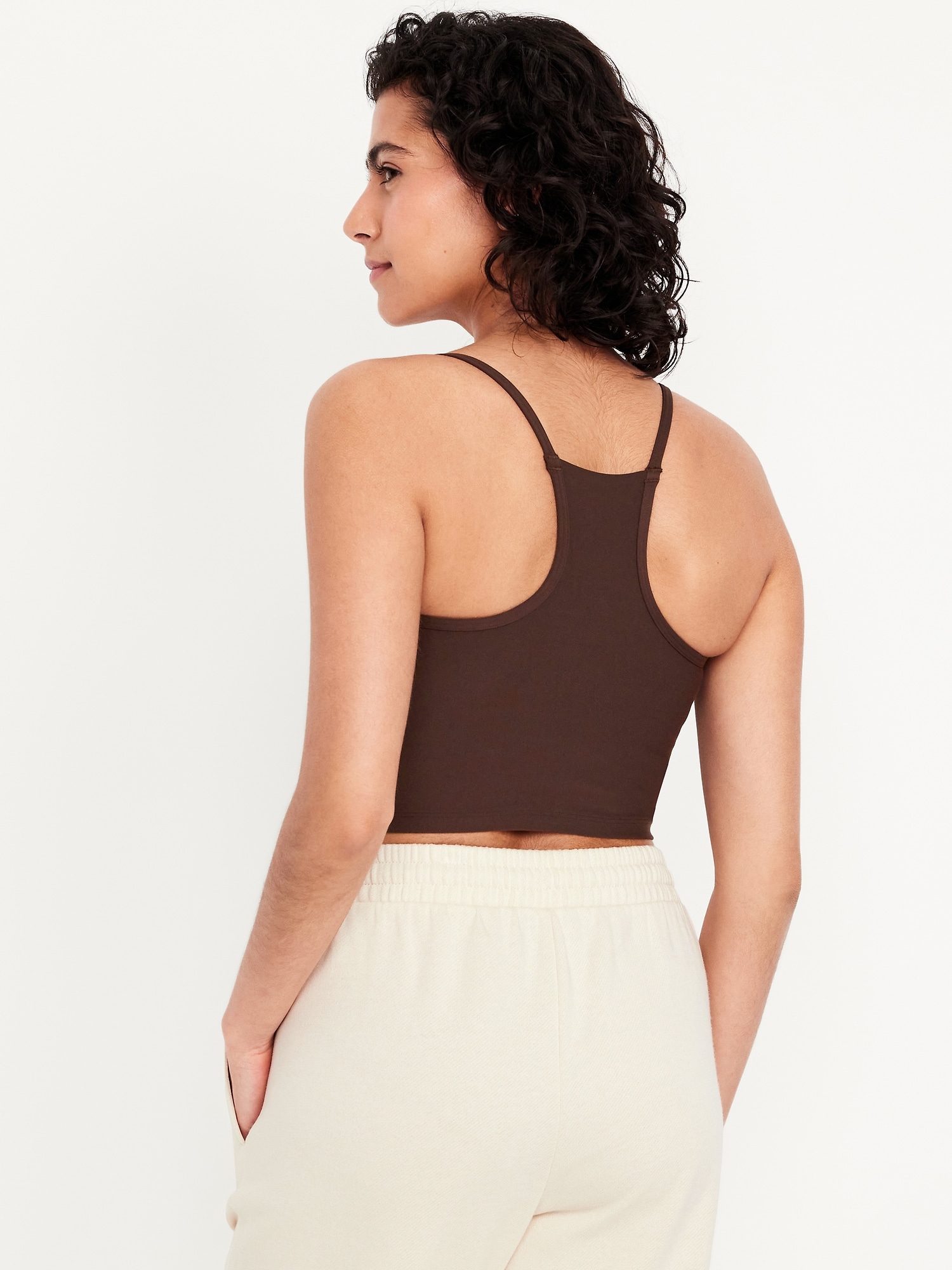 Light Support StudioSmooth Longline Sports Bra: Featuring StudioSmooth. Buttery soft and breathable, with a barely-there feel.high neck, spaghetti straps, removable pads, racerback, go-dry wicks moisture, #694514