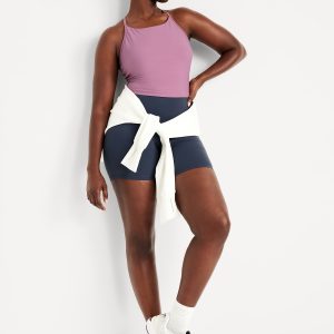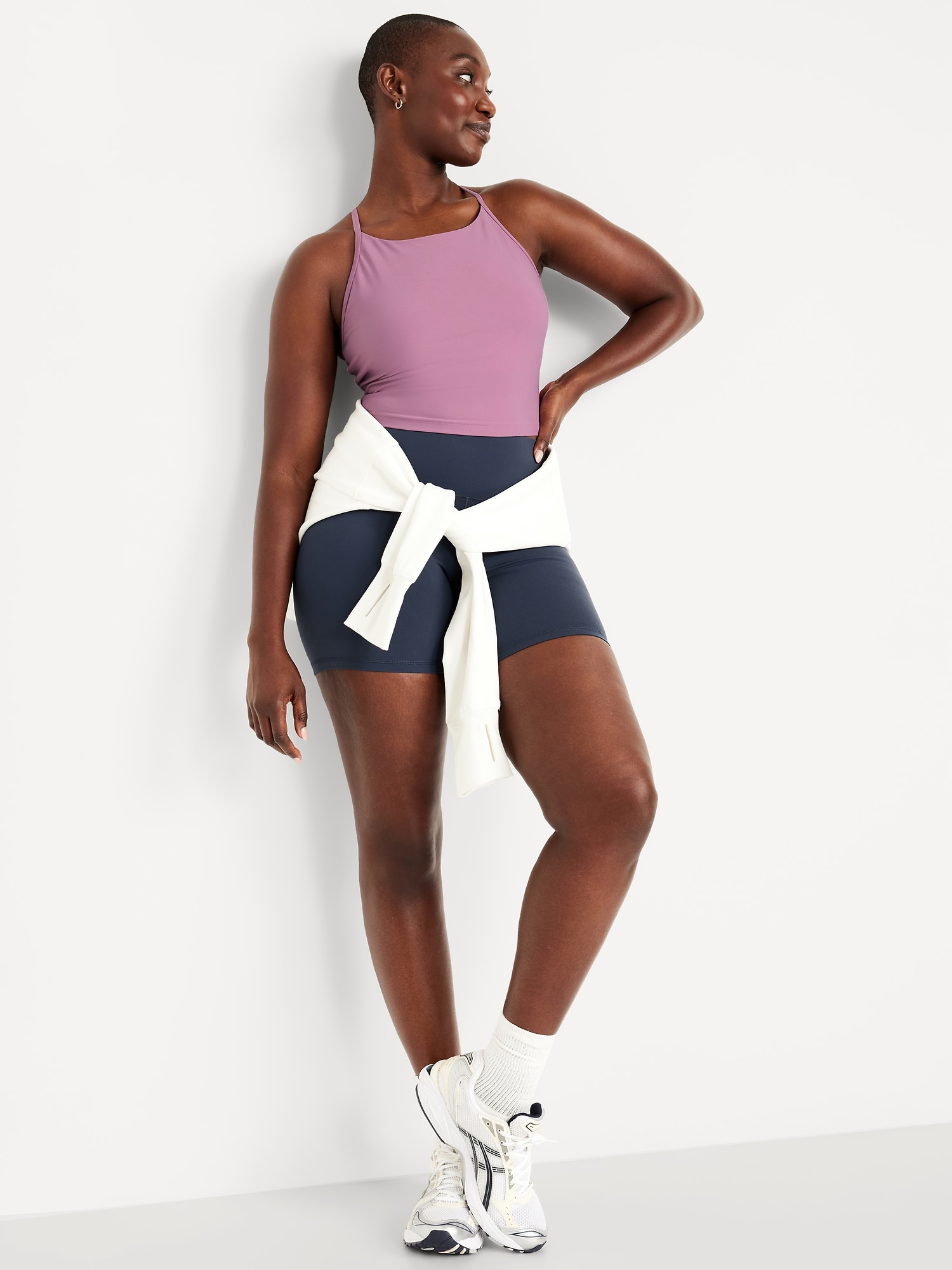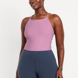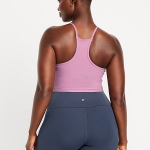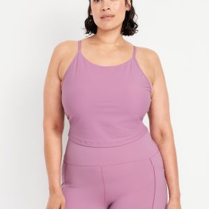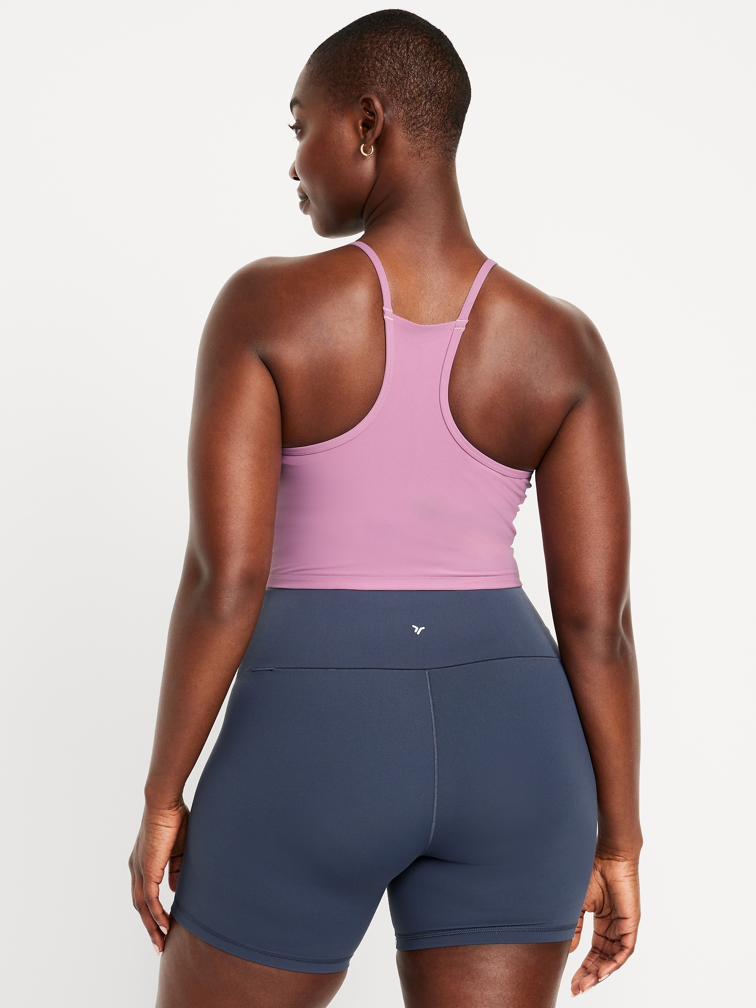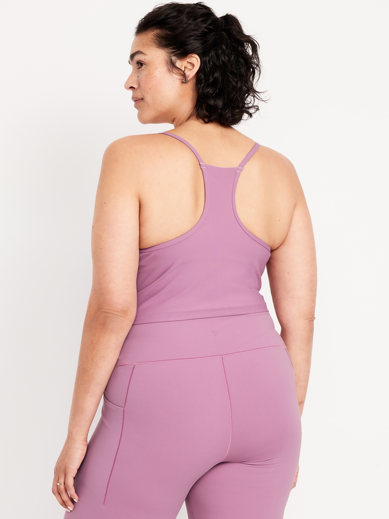Light Support StudioSmooth Longline Sports Bra: Featuring StudioSmooth. Buttery soft and breathable, with a barely-there feel.high neck, spaghetti straps, removable pads, racerback, go-dry wicks moisture, #694514