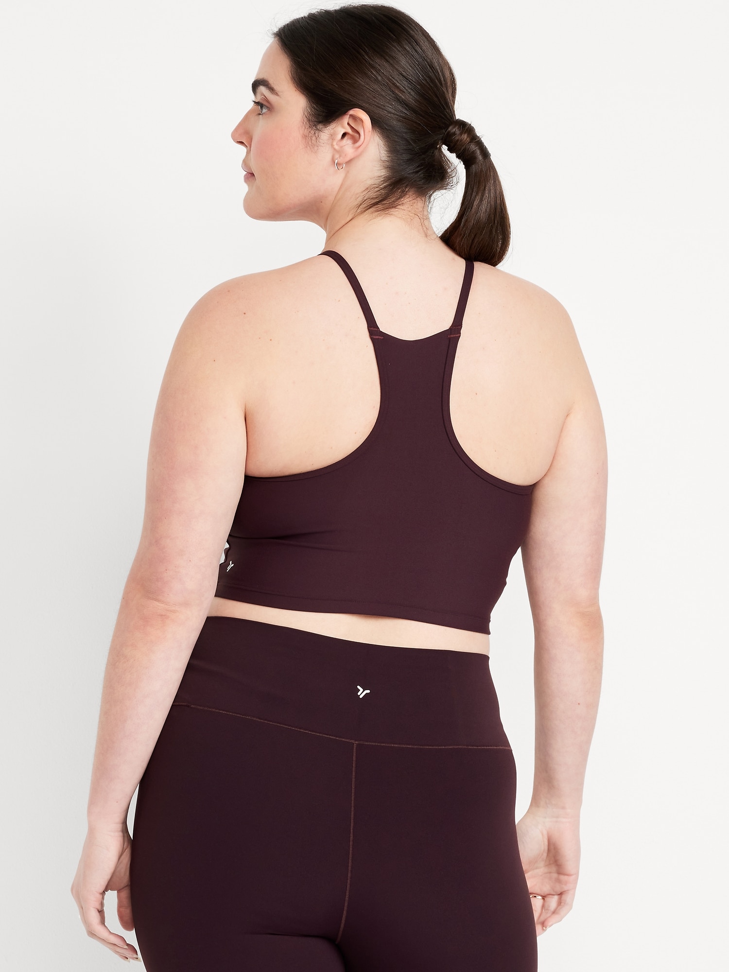 Light Support StudioSmooth Longline Sports Bra: Featuring StudioSmooth. Buttery soft and breathable, with a barely-there feel.high neck, spaghetti straps, removable pads, racerback, go-dry wicks moisture, #694514