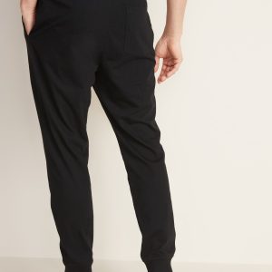 Lightweight Jersey-Knit Joggers: elastic-drawstring waistband, faux fly, hip pockets, back right patch pocket, rib-knit cuffs, pull-on style, #341982