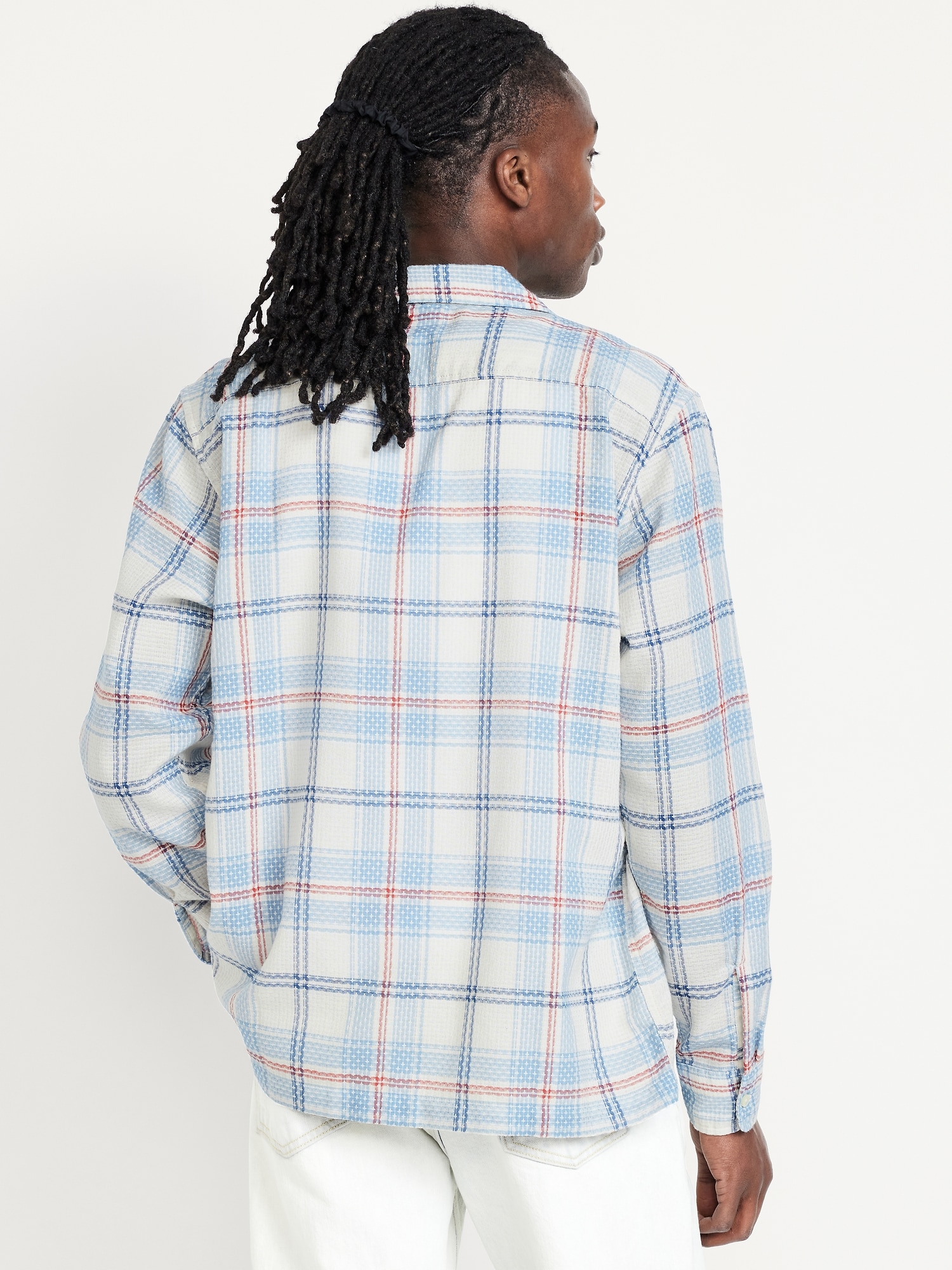 Lightweight Plaid Pocket Shirt: notched collar, long sleeves, button-flap chest pockets, full-button front, plaid print, #762451