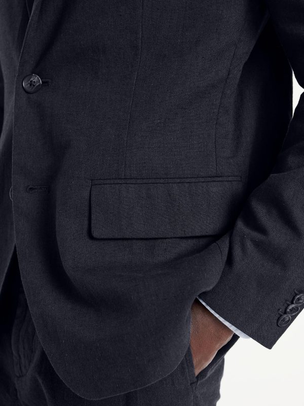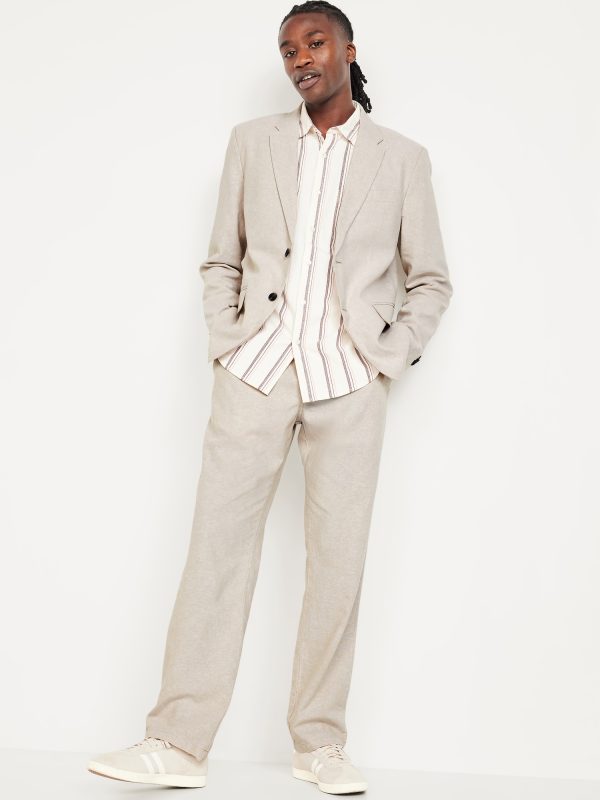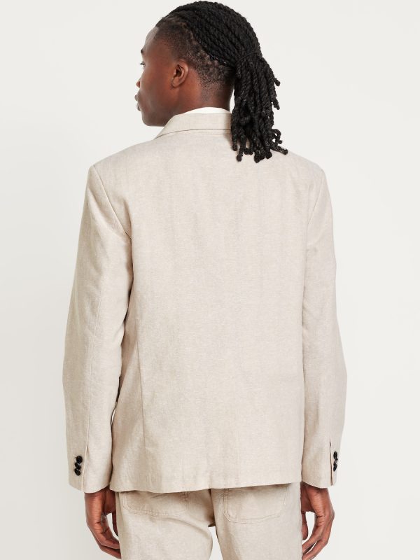 Linen-Blend Blazer: notched lapel, long sleeves, buttoned cuffs, two-button front, welt chest pocket, flap pockets, unlined, #762689