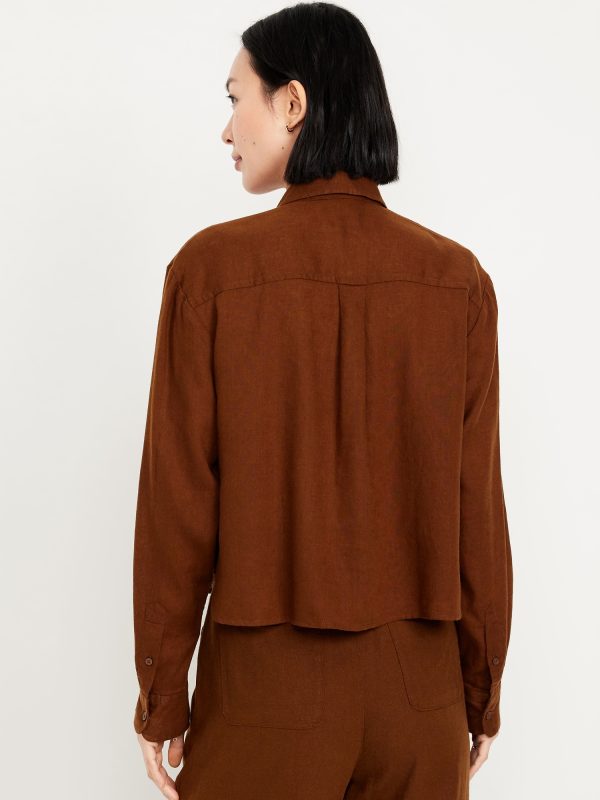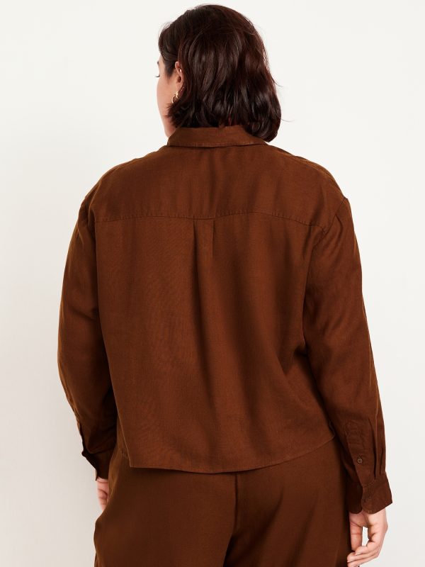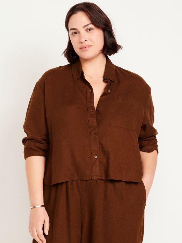 Linen-Blend Button-Down Crop Shirt