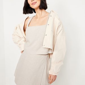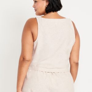 Linen-Blend Crop Top: square neck, sleeveless, darted bust, #756733