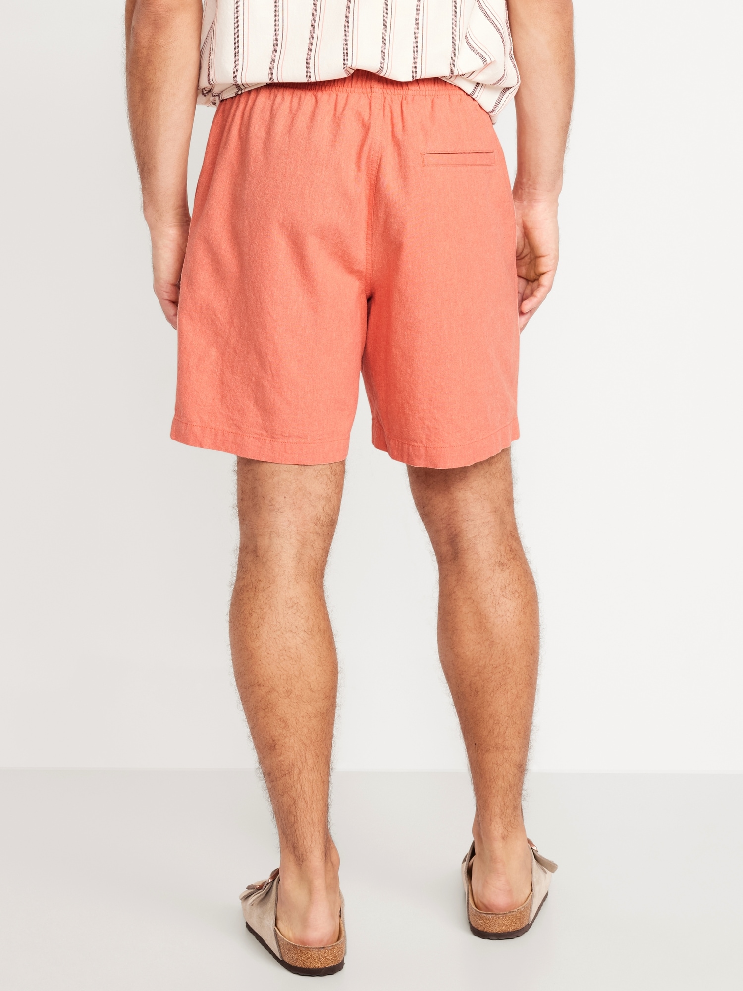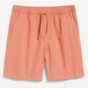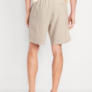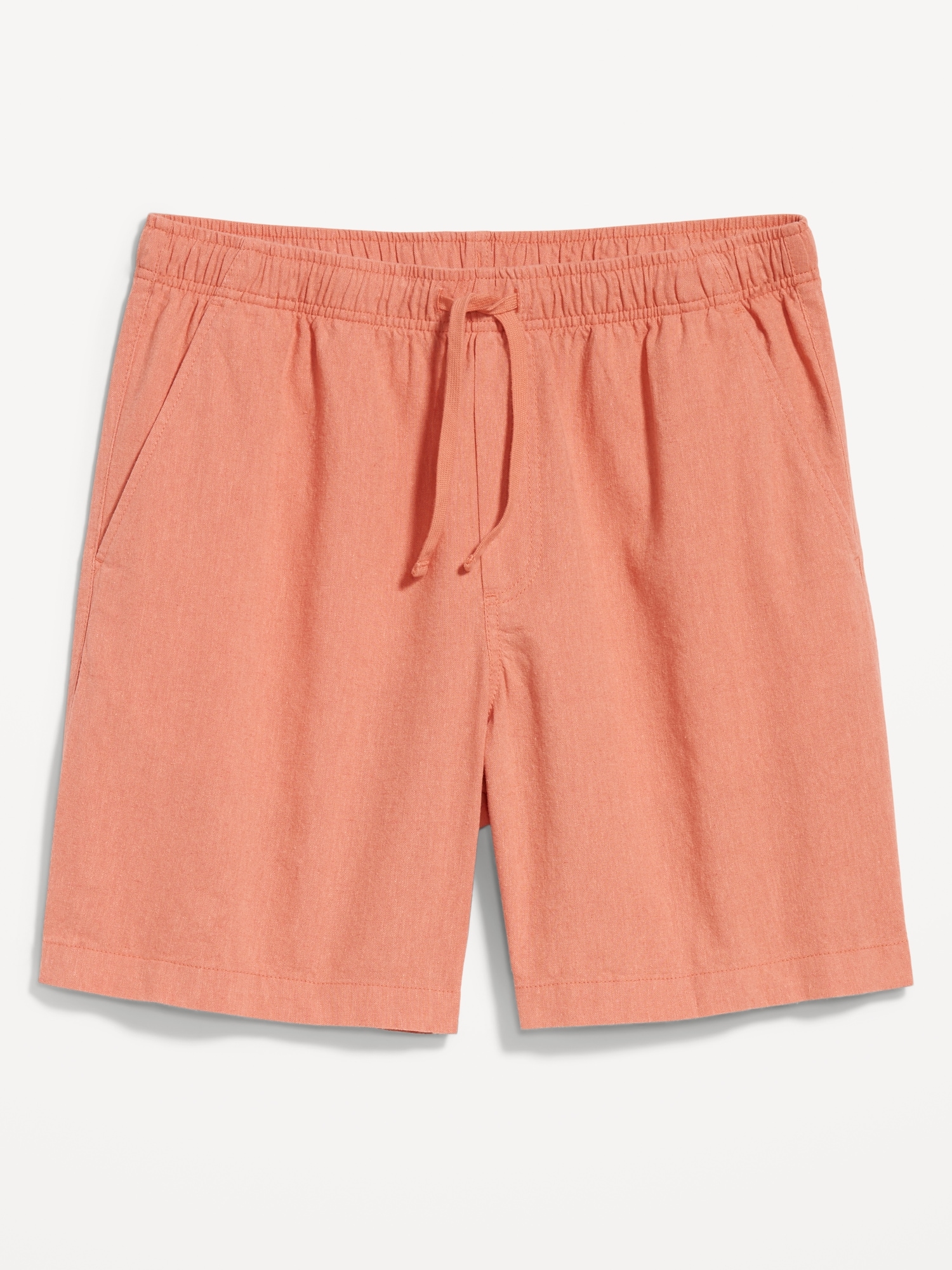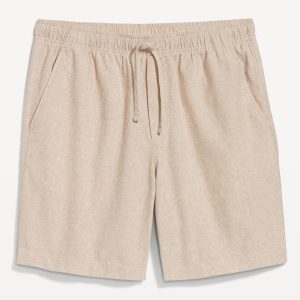 Linen-Blend Jogger Shorts — 7-inch inseam: elastic-drawstring waistband, diagonal hip pockets, back right welt pocket, #695576