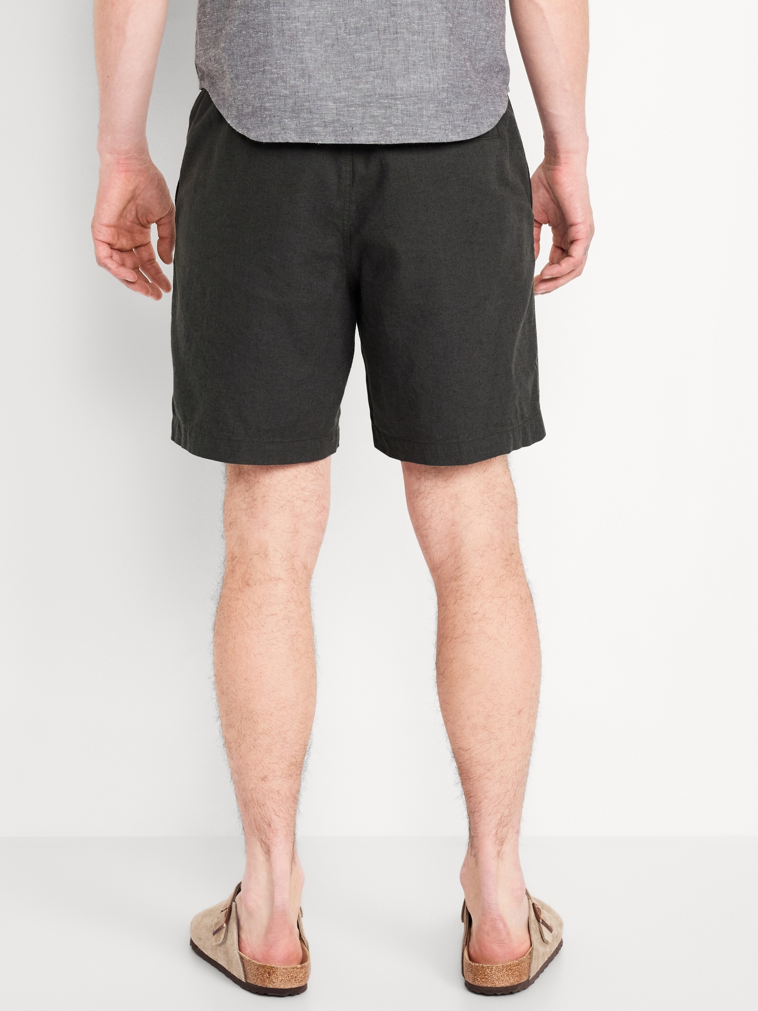 Linen-Blend Jogger Shorts — 7-inch inseam: elastic-drawstring waistband, diagonal hip pockets, back right welt pocket, #695576