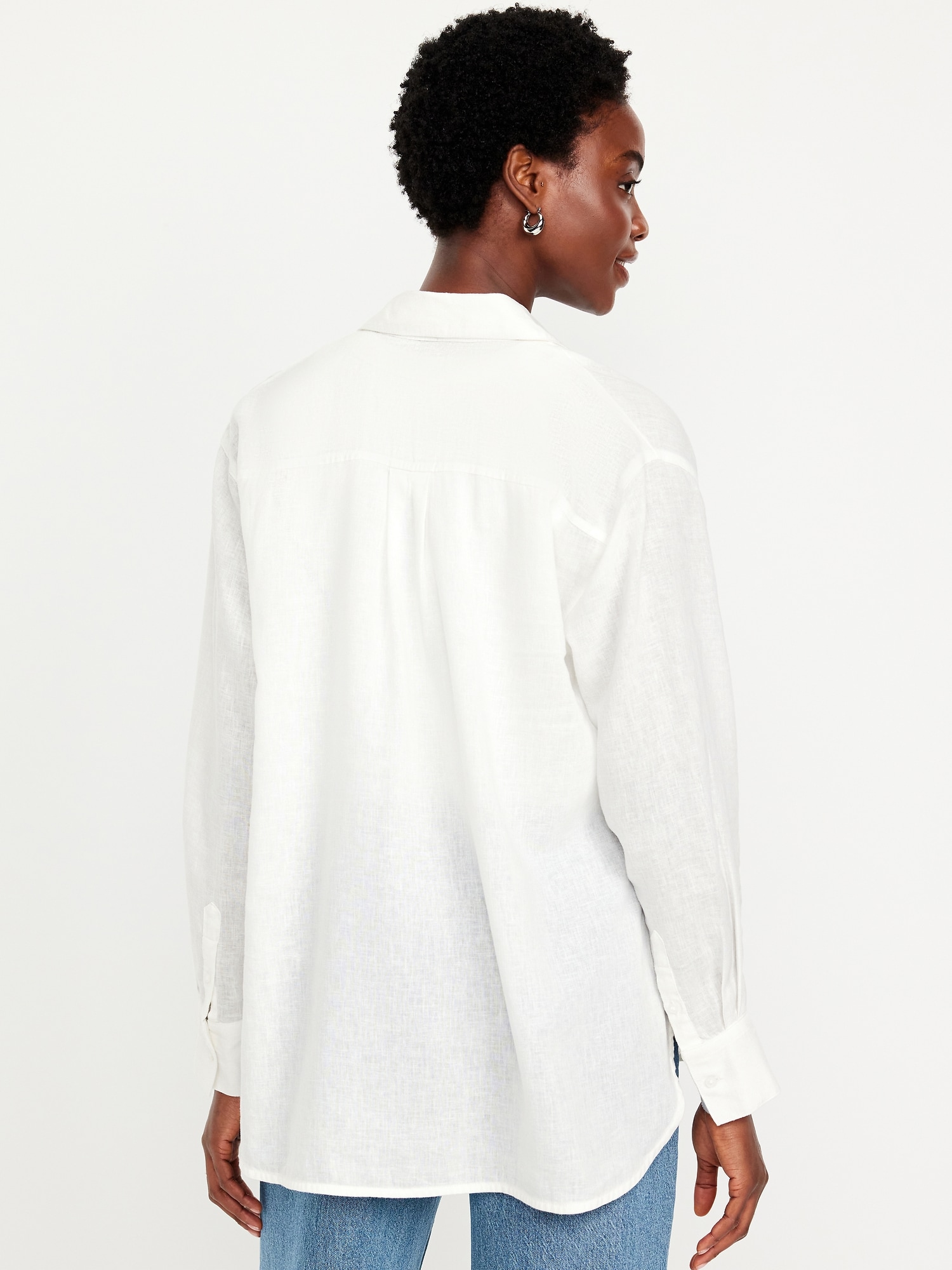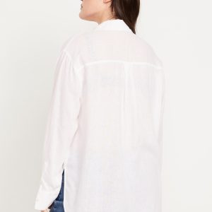 Linen-Blend Loose Button-Down Shirt