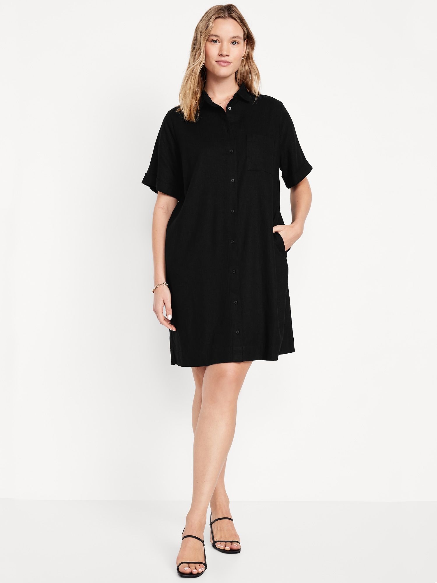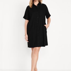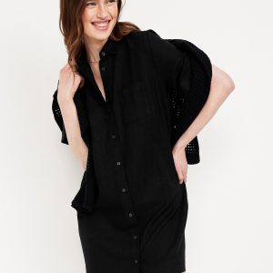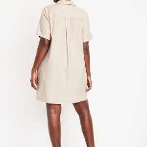 Linen-Blend Mini Shirt Dress