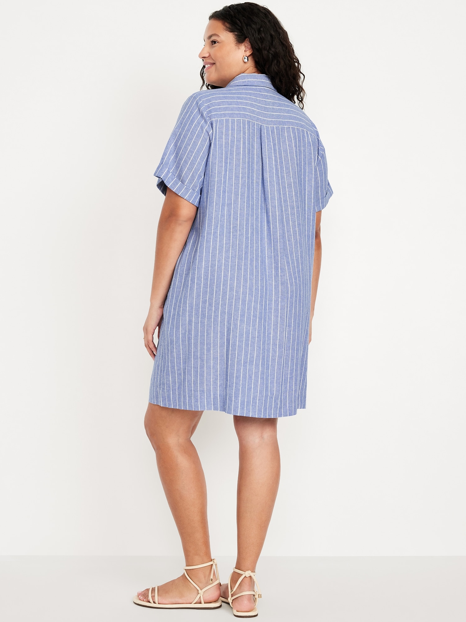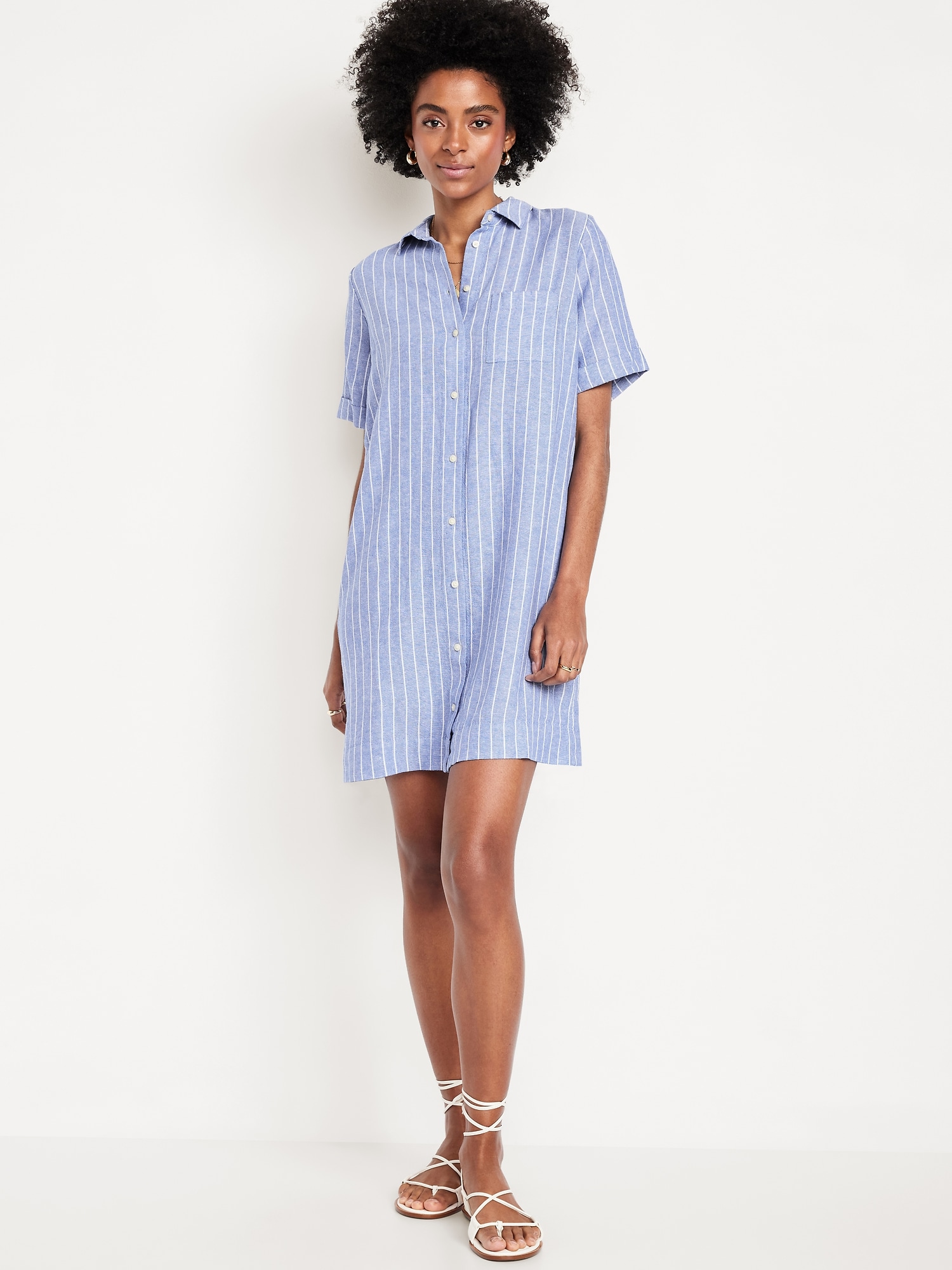 Linen-Blend Mini Shirt Dress