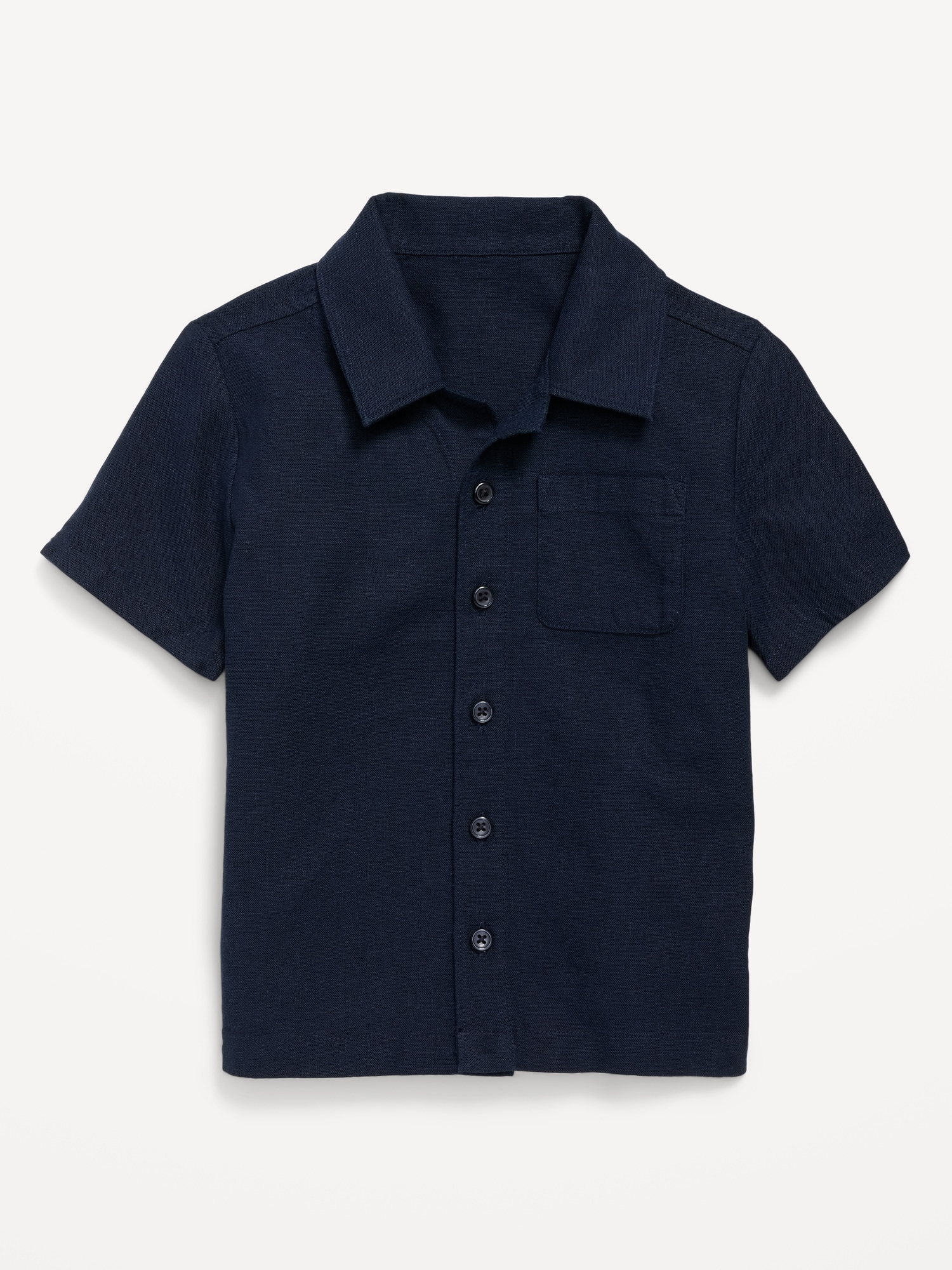 Linen-Blend Pocket Shirt for Toddler Boys: pointed spread collar, short sleeves, full-length button front, flap buttoned utility pockets at chest, #859469