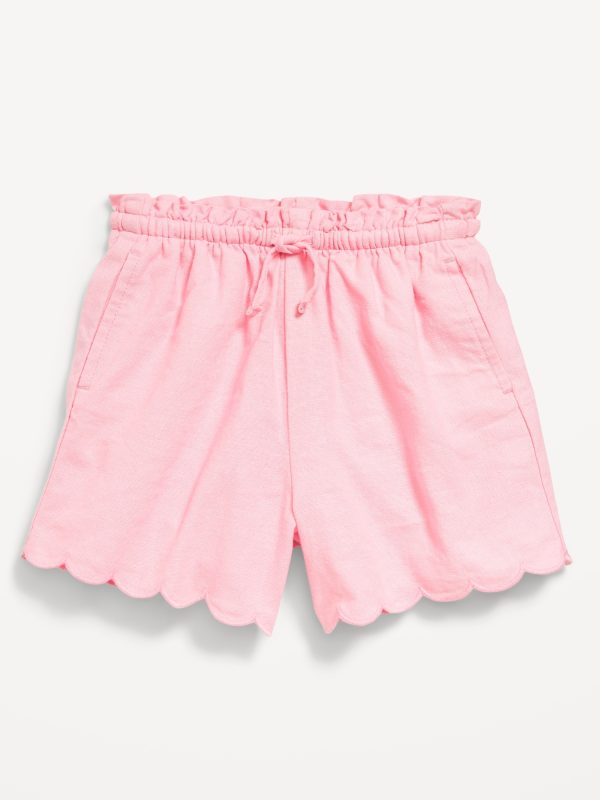 Linen-Blend Scallop-Trim Shorts for Toddler Girls