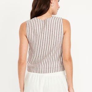 Linen-Blend Tie-Front Vest: v-neck, sleeveless, tie-front accent, #764212