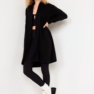 Live-In Open-Front Longline Wrap: open front, long sleeves, jersey-lined side pockets, #607749