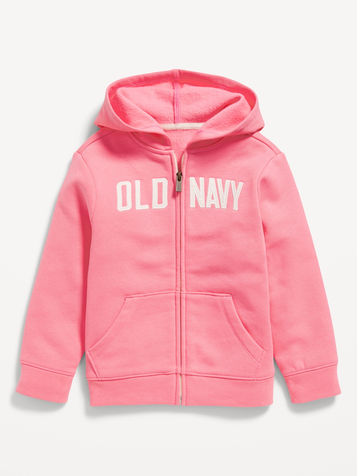 Logo-Graphic Zip Hoodie for Toddler Girls: built-in hood, long sleeves, logo applique graphic across front, hand-warming scoop pockets, full-length zipper, available exclusively online or at old navy outlet stores, #752910