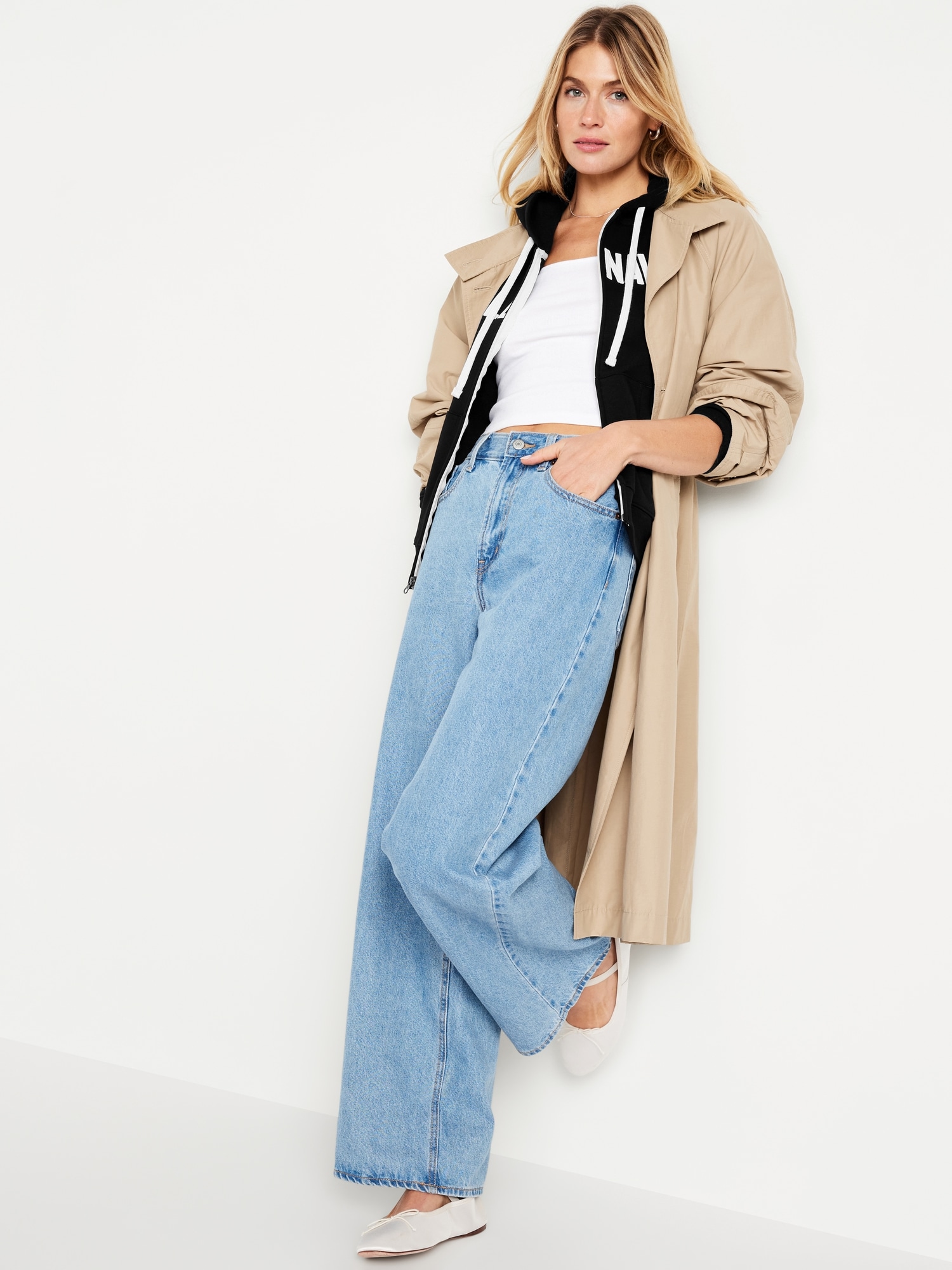 Logo Zip Hoodie Sweatshirt: available exclusively online and at outlet stores, drawstring hood, drop-shoulder sleeves, full-zip front, hand-warming pockets, rib-knit trim, #864993