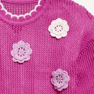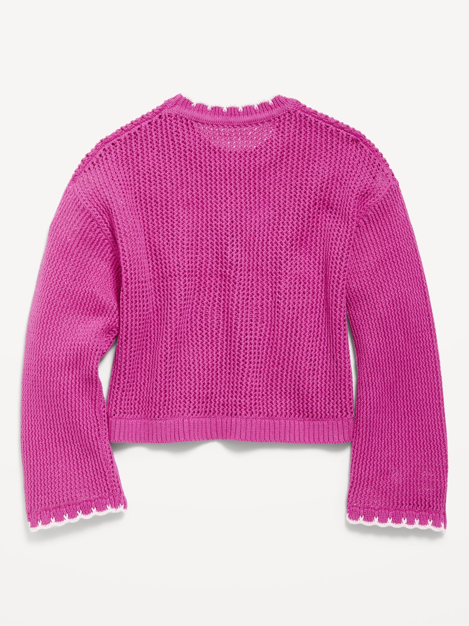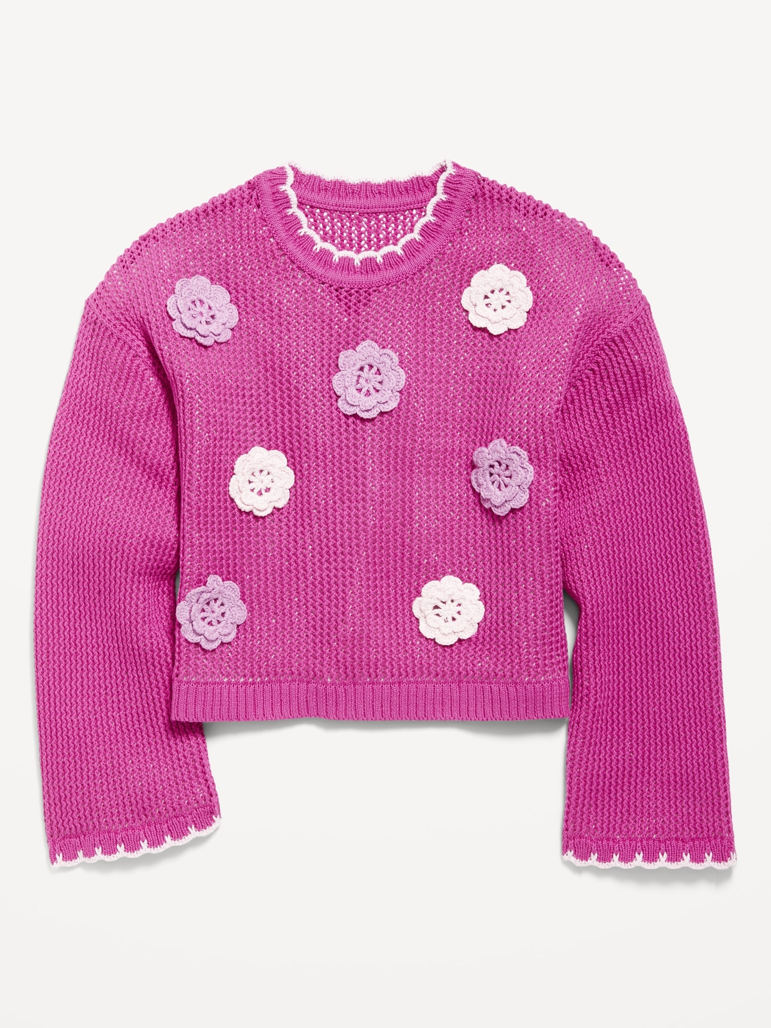 Long-Sleeve Crochet-Floral Sweater for Girls