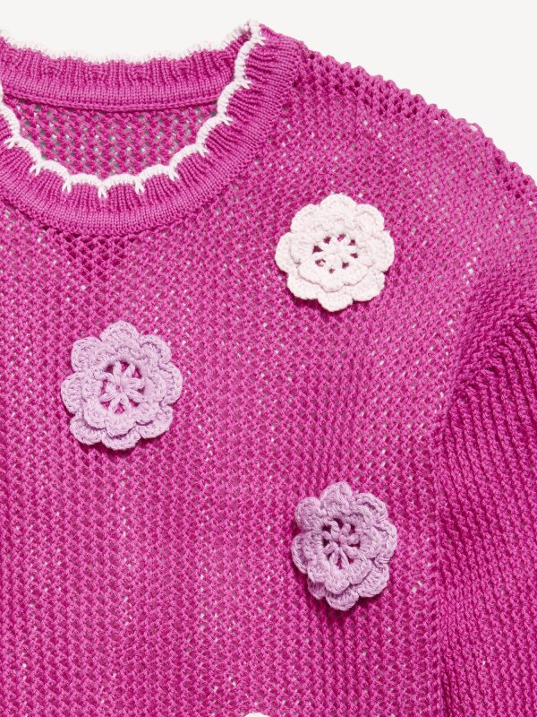 Long-Sleeve Crochet-Floral Sweater for Girls