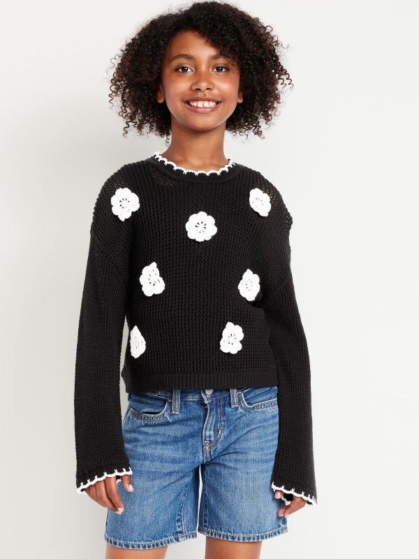 Long-Sleeve Crochet-Floral Sweater for Girls