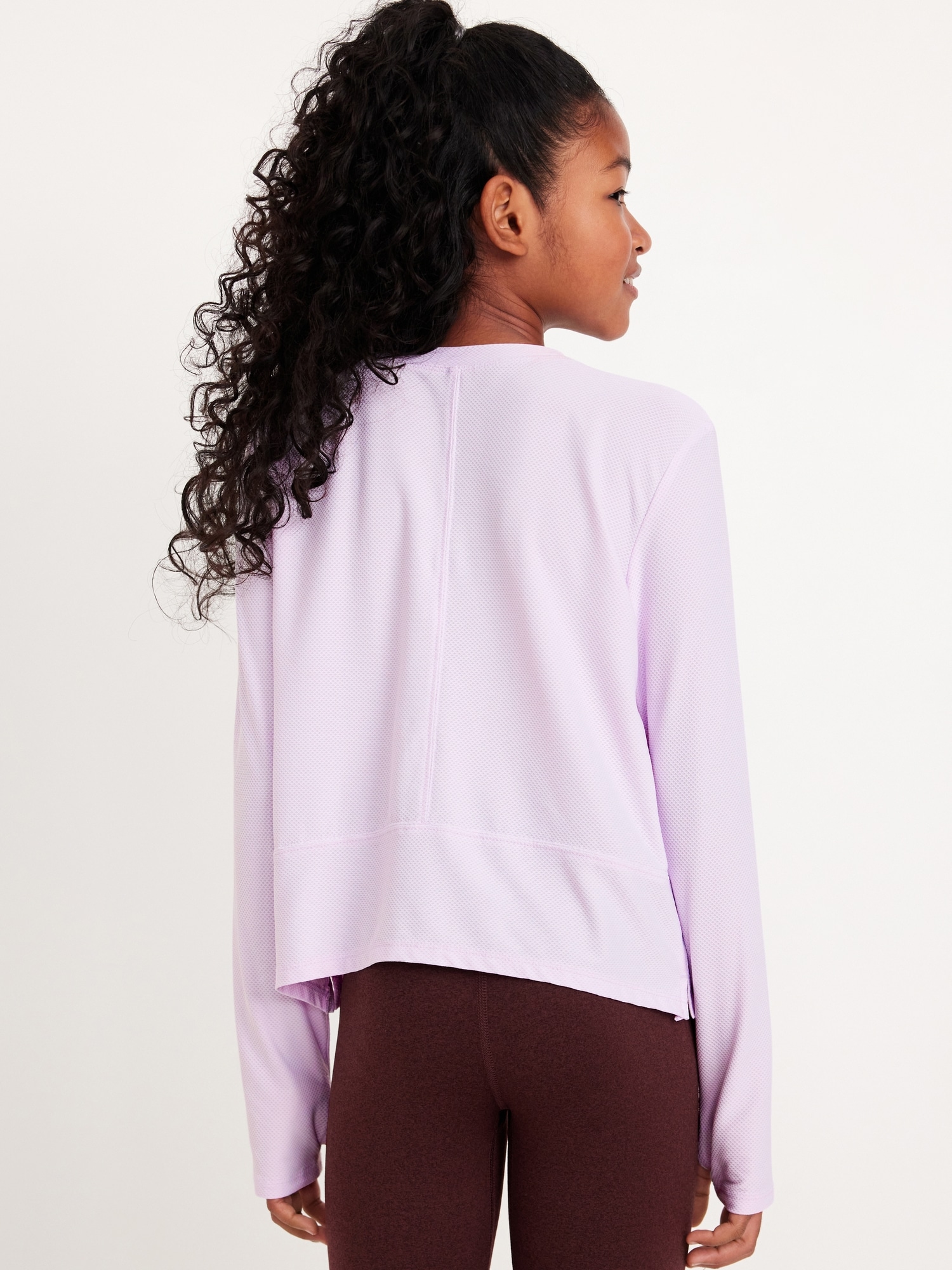 Long-Sleeve Curved-Hem Performance Top for Girls