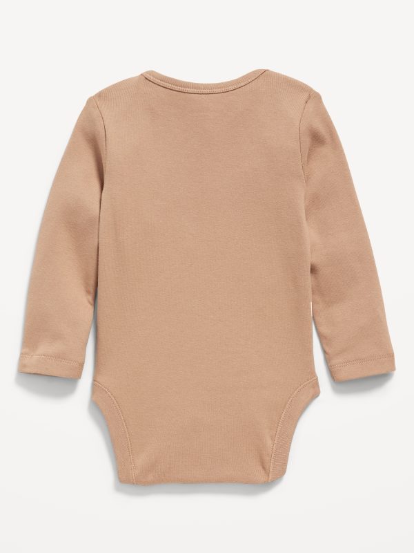 Long-Sleeve Graphic Bodysuit for Baby: envelope neckline, ruching along neckline, long sleeves, snaps along inseam, all-over print, #806284