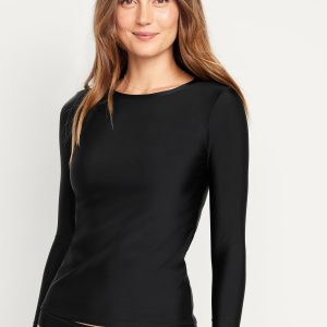 Long-Sleeve Matte Rashguard Swim Top: crew neck, long sleeves, #865251