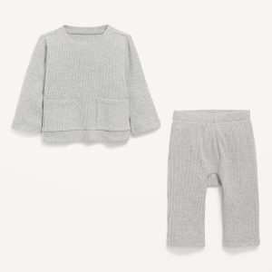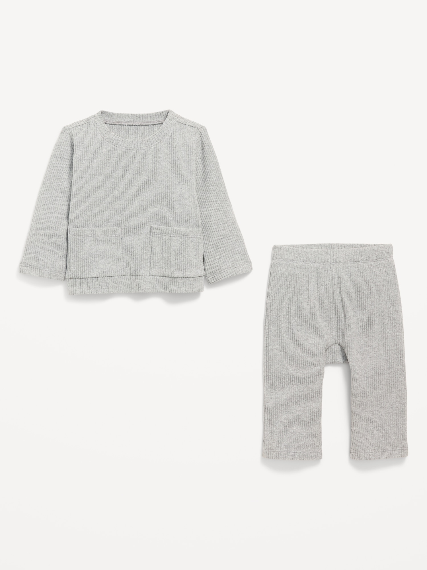 Long-Sleeve Ribbed Pocket T-Shirt and Pants Set for Baby