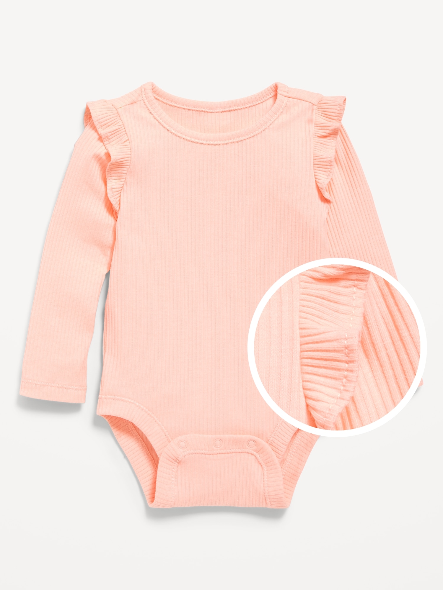 Long-Sleeve Ribbed Ruffle-Trim Bodysuit for Baby