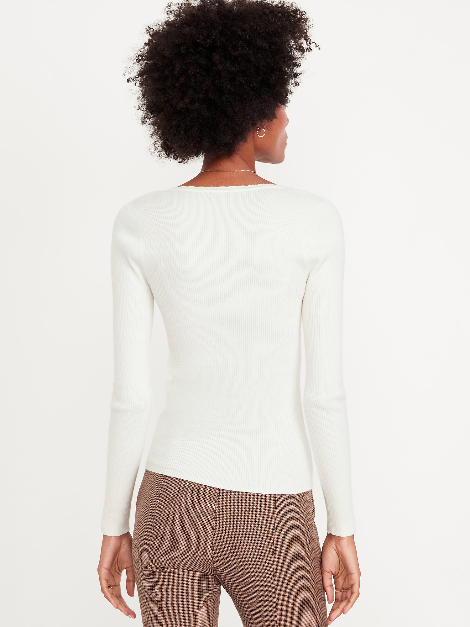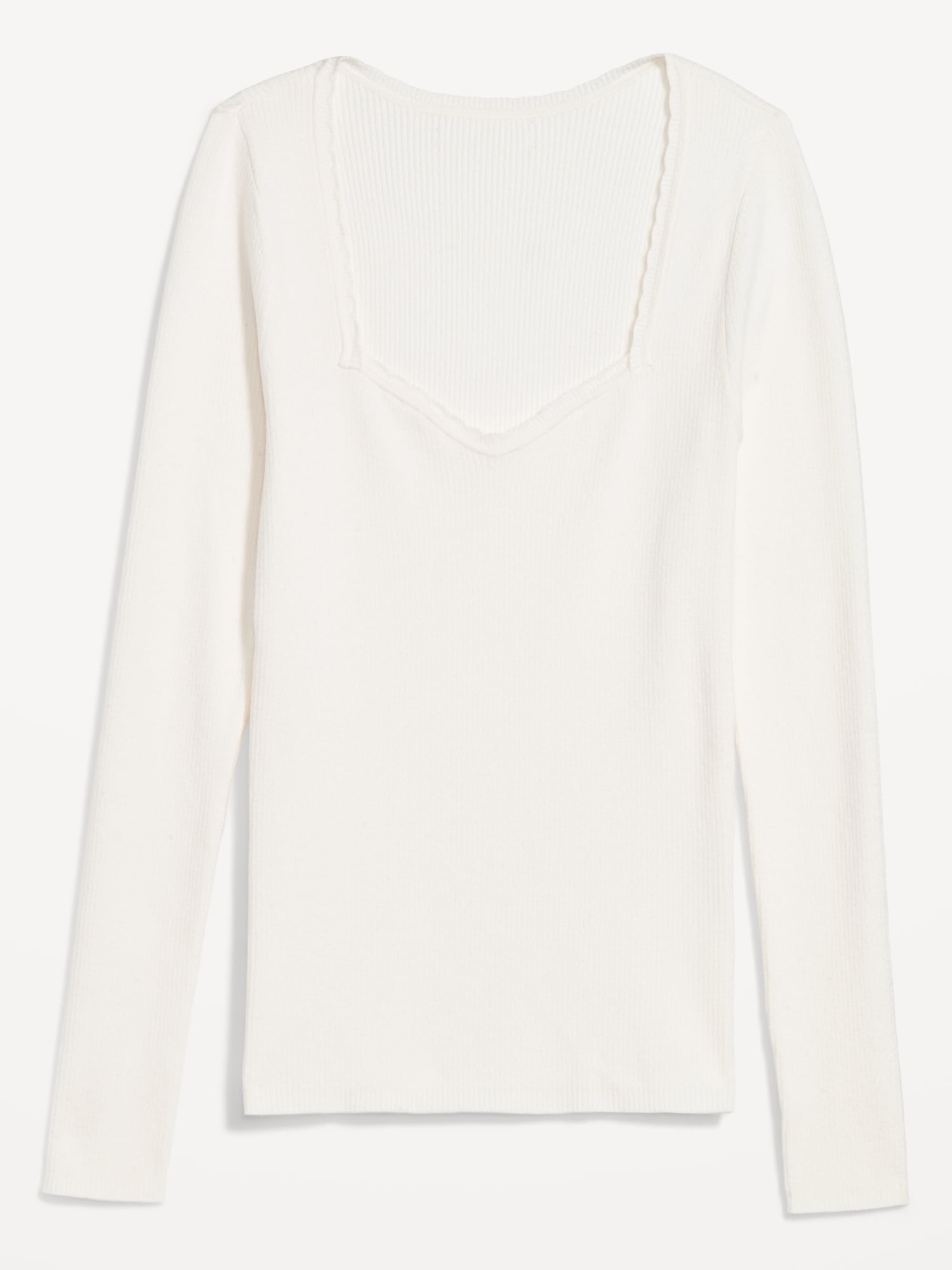 Long-Sleeve Ribbed Sweater: sweetheart neckline, long sleeves, pullover style, #576694
