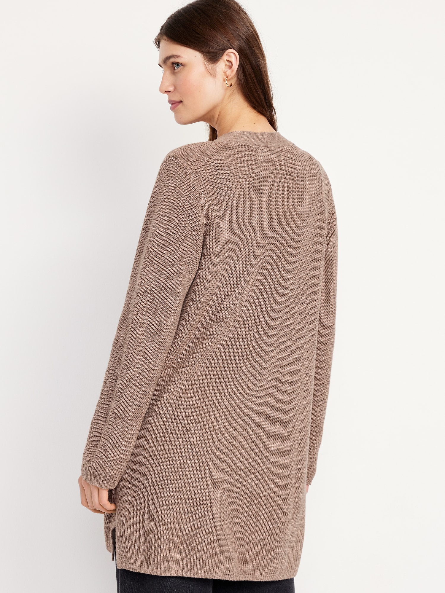 Longline Open-Front Sweater: long sleeves, patch pockets, vented sides, #784424