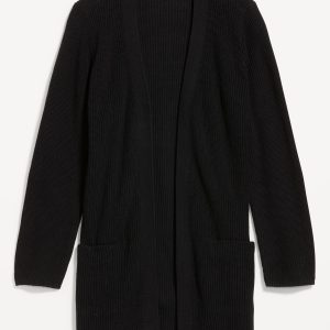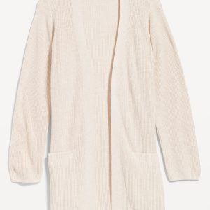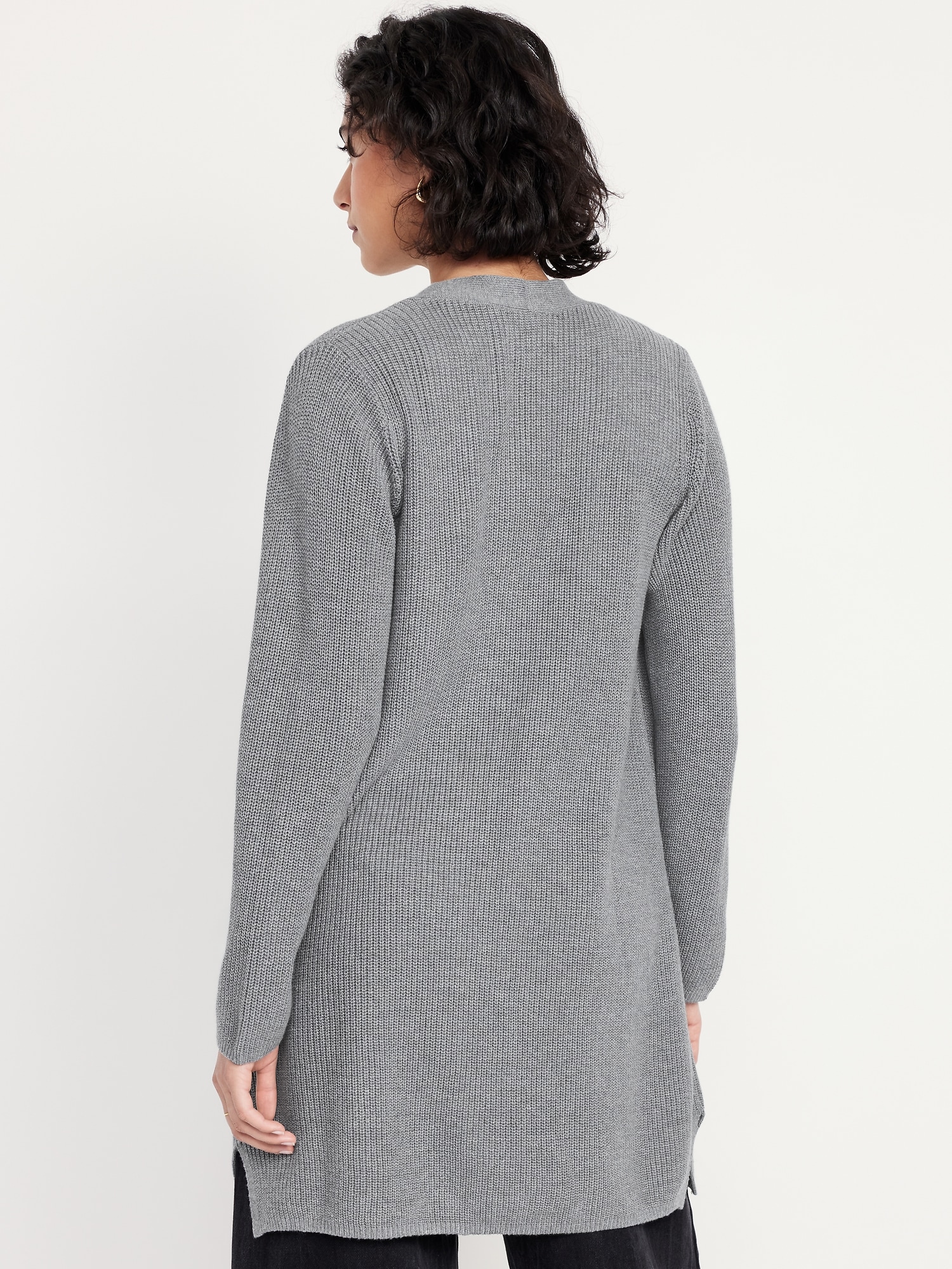 Longline Open-Front Sweater: long sleeves, patch pockets, vented sides, #784424