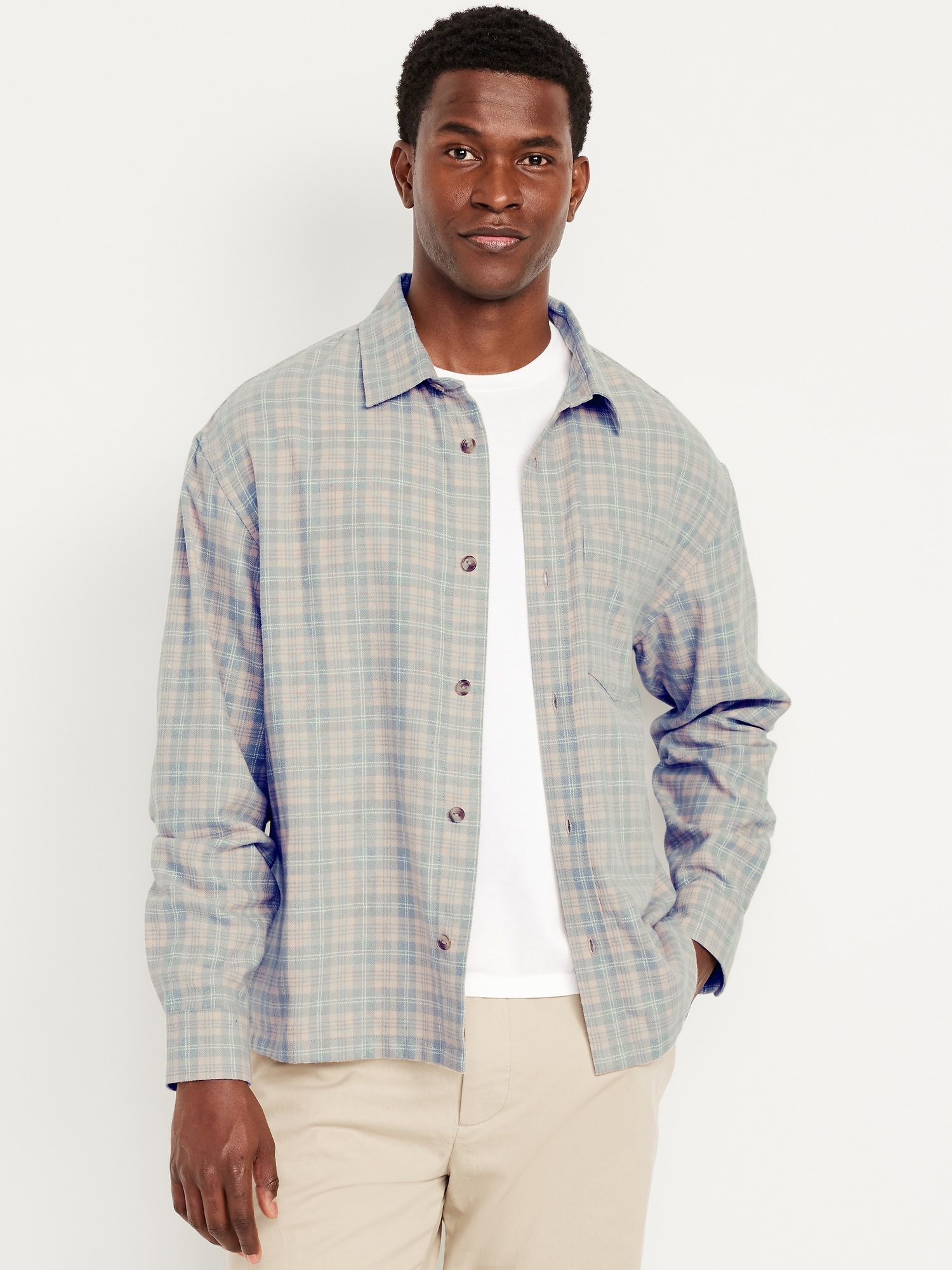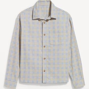 Loose Fit Cropped Plaid Flannel Shirt