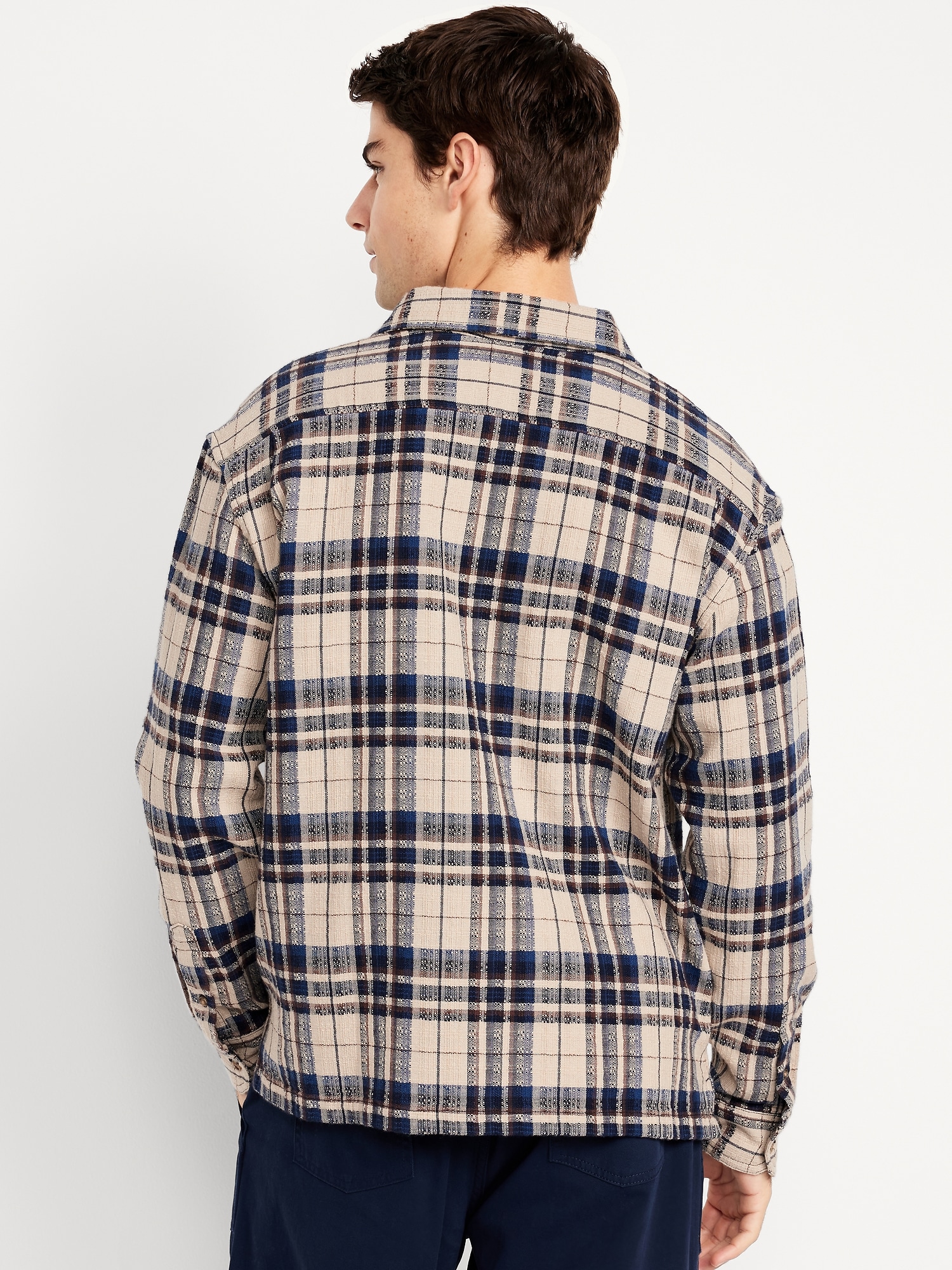 Loose Fit Plaid Pocket Shirt: spread collar, long sleeves with buttoned cuffs, full-button front, patch chest pocket, plaid print, #762448
