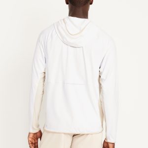 Loose Fit Pullover Run Hoodie: built-in hood, long raglan sleeves, reflective trim at center back, go-dry cool wicks moisture and keeps you cool, breathable, pullover style, #749723