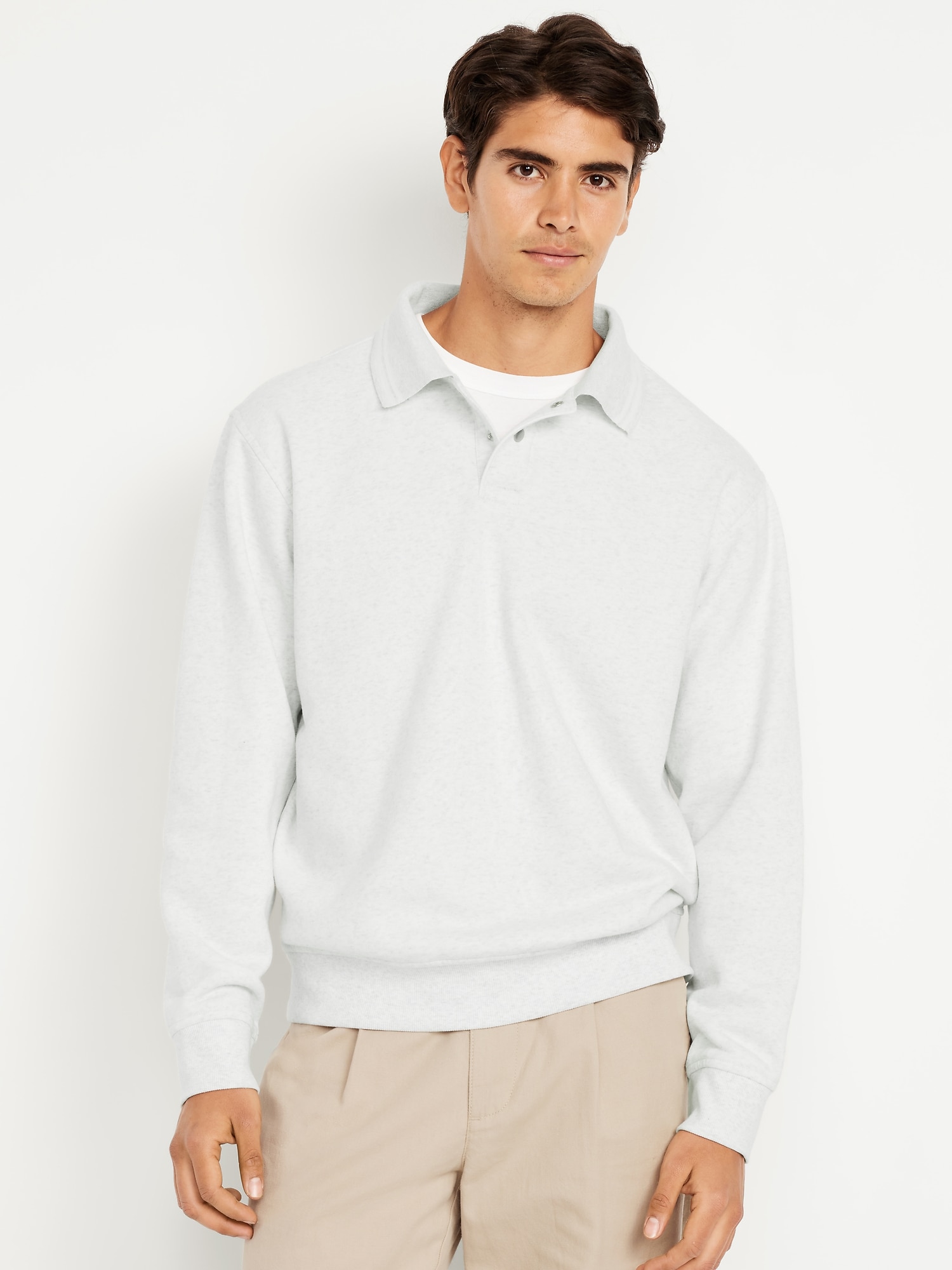 Loose Fleece Polo: rib-knit collar, long sleeves, snap placket, rib-knit cuffs and hem, pullover style, #787707