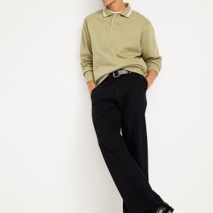 Loose Fleece Polo: rib-knit collar, long sleeves, snap placket, rib-knit cuffs and hem, pullover style, #787707