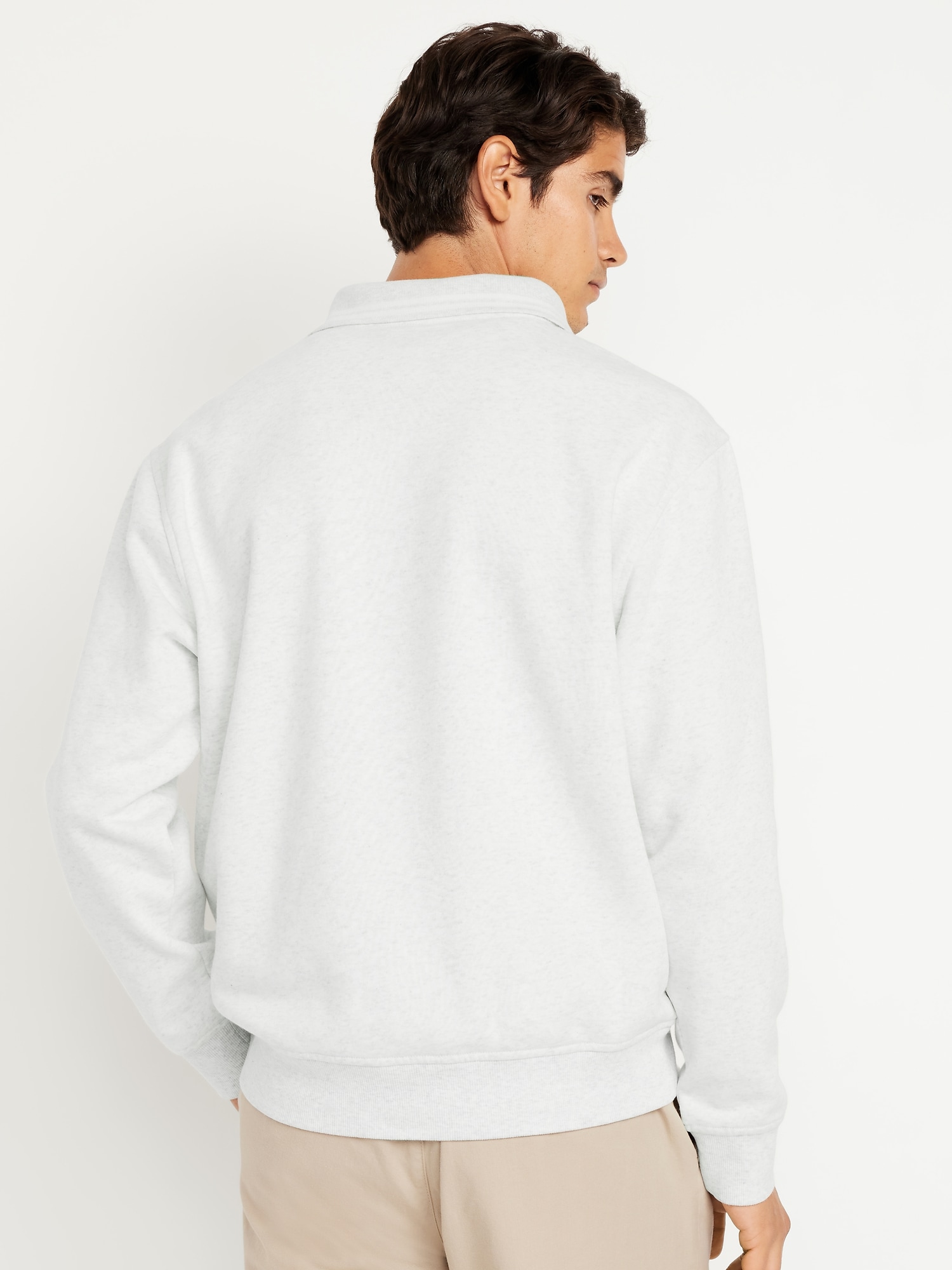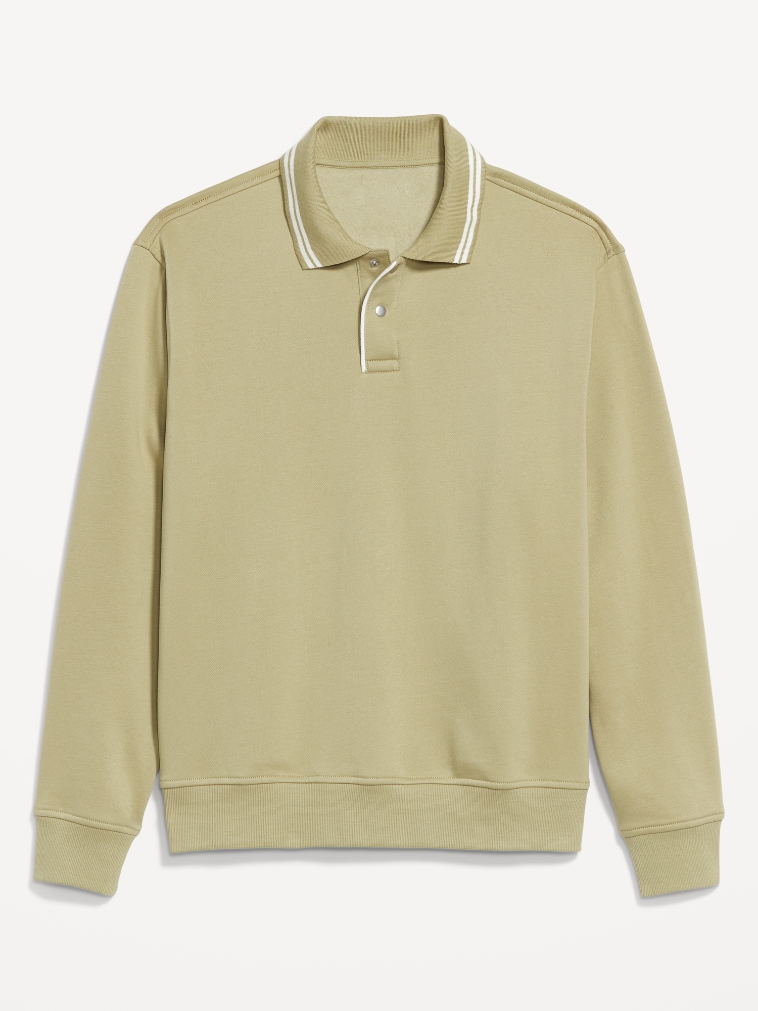 Loose Fleece Polo: rib-knit collar, long sleeves, snap placket, rib-knit cuffs and hem, pullover style, #787707