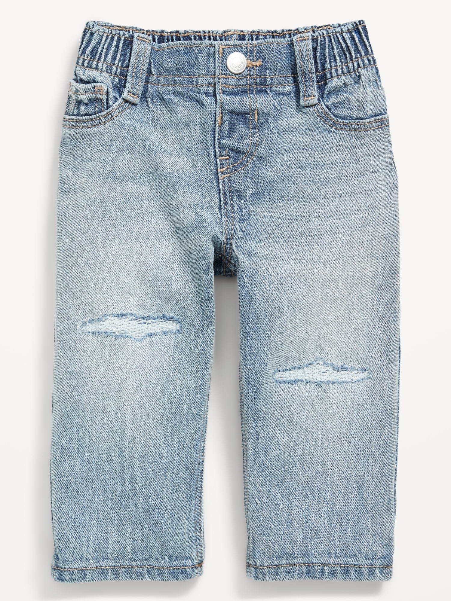 Loose Jeans for Baby: comfy elasticized waistband, functional snap-close front, faux fly, decorative scoop and coin faux pockets at front, patch pockets at back, #802703