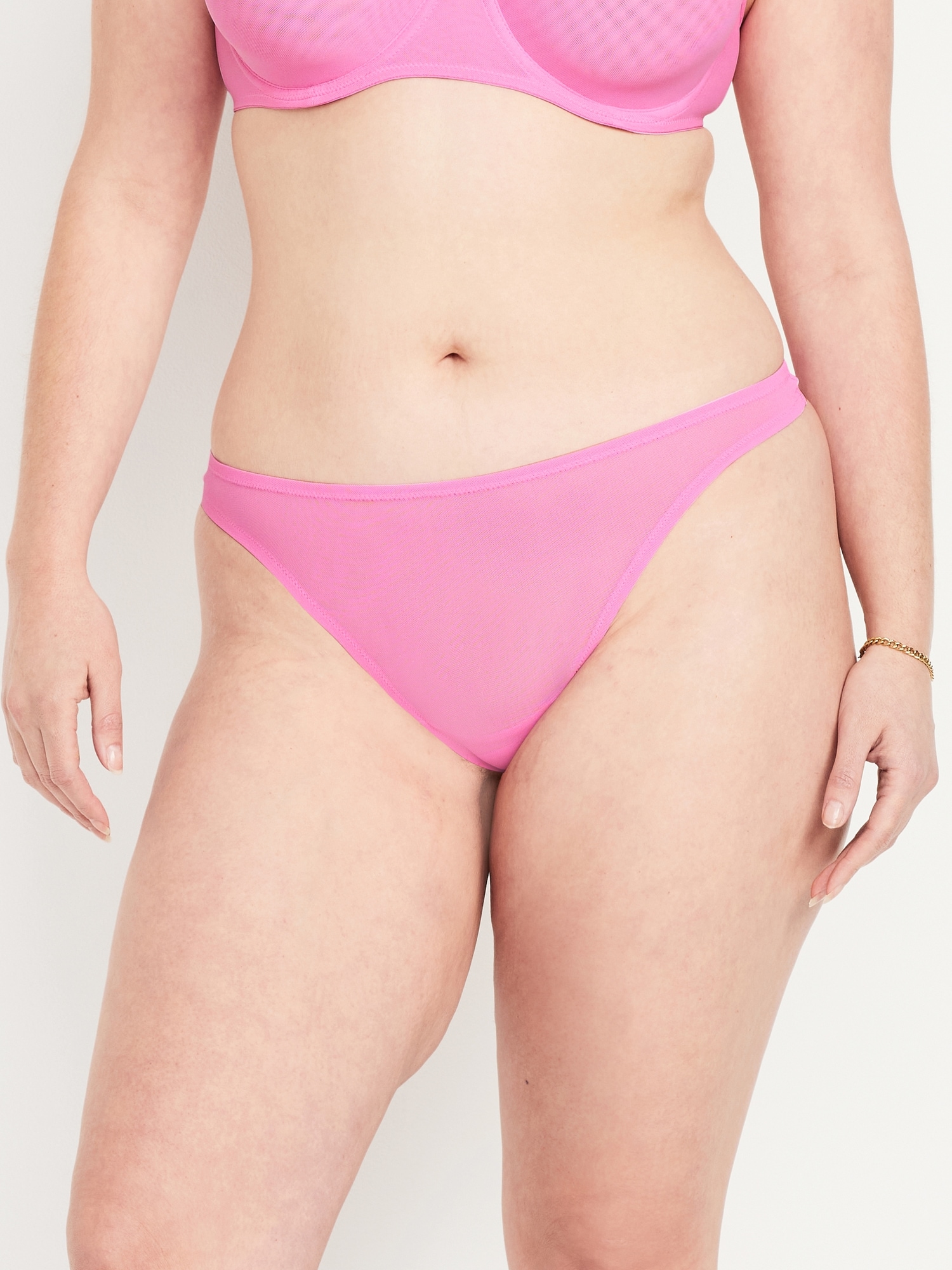 Low-Rise Mesh Thong Underwear: elasticized waistband, elasticized leg openings, #684578