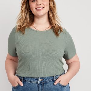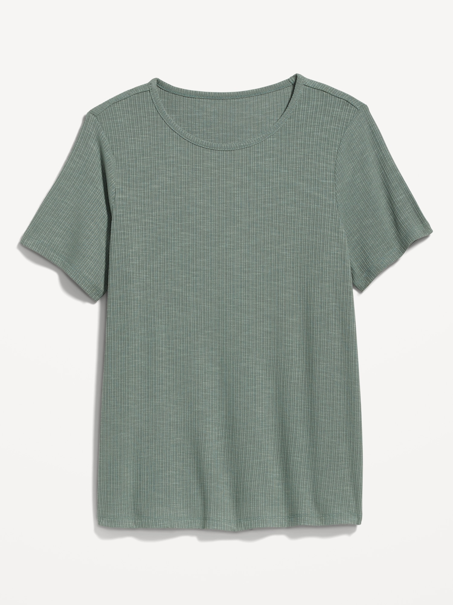 Luxe Ribbed Slub-Knit T-Shirt: A draped, flawless fit that’s ultra soft.crew neck, short sleeves, floral print, #693045