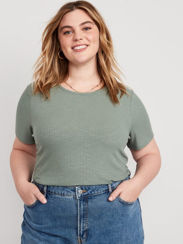Luxe Ribbed Slub-Knit T-Shirt: A draped, flawless fit that’s ultra soft.crew neck, short sleeves, floral print, #693045