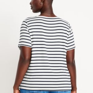 Luxe V-Neck Striped T-Shirt: A draped, flawless fit that’s ultra soft.v-neck, short sleeves, #796584